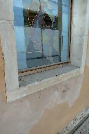 La facciata del frontale di ingresso presenta gli stessi problemi, accentuati dal fatto che l’intonaco sul “nartece”, ossia il portico, si stacca in più punti e va ripristinato. Inoltre abbiamo sistemato le tre statue mar-