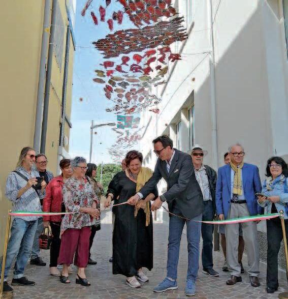 proposta da artisti caorlotti e del pordenonese, che trova collocazione per tutta l’estate in Calle delle Scuole (nella foto, l’inaugurazione)