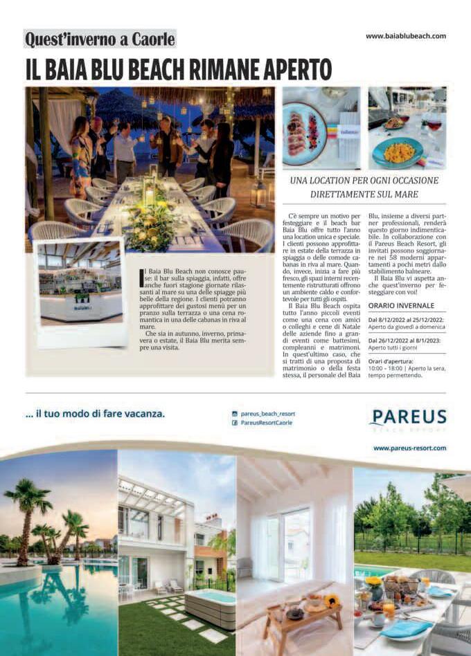 Lo stato della Pesca in Veneto e a Caorle 16 I primi vent’anni del “Centro Pertini” 17 All’I.C. Palladio il premio #DonareMiDona di Manuela Pelosin 22-23 Appuntamenti di Natale 25 “Cae Longa”: ecco il videofilm 26 “Talenti in sinergia” alla Dal Ben Spa 29 No alla violenza sulle donne di Manuela Pelosin 30 Il 2022 con le prime pagine di CaorleMare Magazine 31 Come eravamo... CaorleMare ha sede in Calle Lunga 24 33 Demografia: quanti siamo a Caorle? 35 Premio “G. Mazzarotto” domenica 18 dicembre 36-37 Paolo Padovese ingegnere in Argentina 37 USA - Giulia Biancon vince il “Campese Award” 39 Città e Cittadini 41 Il primo storico Giro d’Italia a Maggio 2023 42 Campioni del presente e del futuro a Caorle di Aurora Ineschi 43 Cresce il basket in rosa 44 Beato Albino Luciani, il papa dell’Umiltà 45 Dogi Ziani, caprulani o equilani ? di Aurora Ineschi 47 A.n.m.i. raddoppia i soci 48-49 Odysseia - Viaggio nella Grecia Occidentale di Flavio Ineschi e a pag. 50 AUGURI CITTÀ DI CAORLE di Isidoro Silvestrini in copertina: “Salviamo il Santuario della Madonna dell’Angelo” - ©