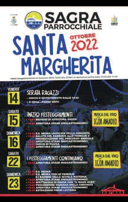 Una postilla dato l’argo mento: la Festa dello Sport annullata a causa delle avver sità meteorologiche lo scorso 15 settembre, è stata riman data al 15 ottobre presso il Palaexpomar; ci saranno le associazioni sportive del ter ritorio e molti allenatori che hanno partecipato alla serata educante, quale occasione mi gliore per conoscerli e per far conoscere le esperienze fon damentali che la pratica di una disciplina aggiunge ad ogni individuo