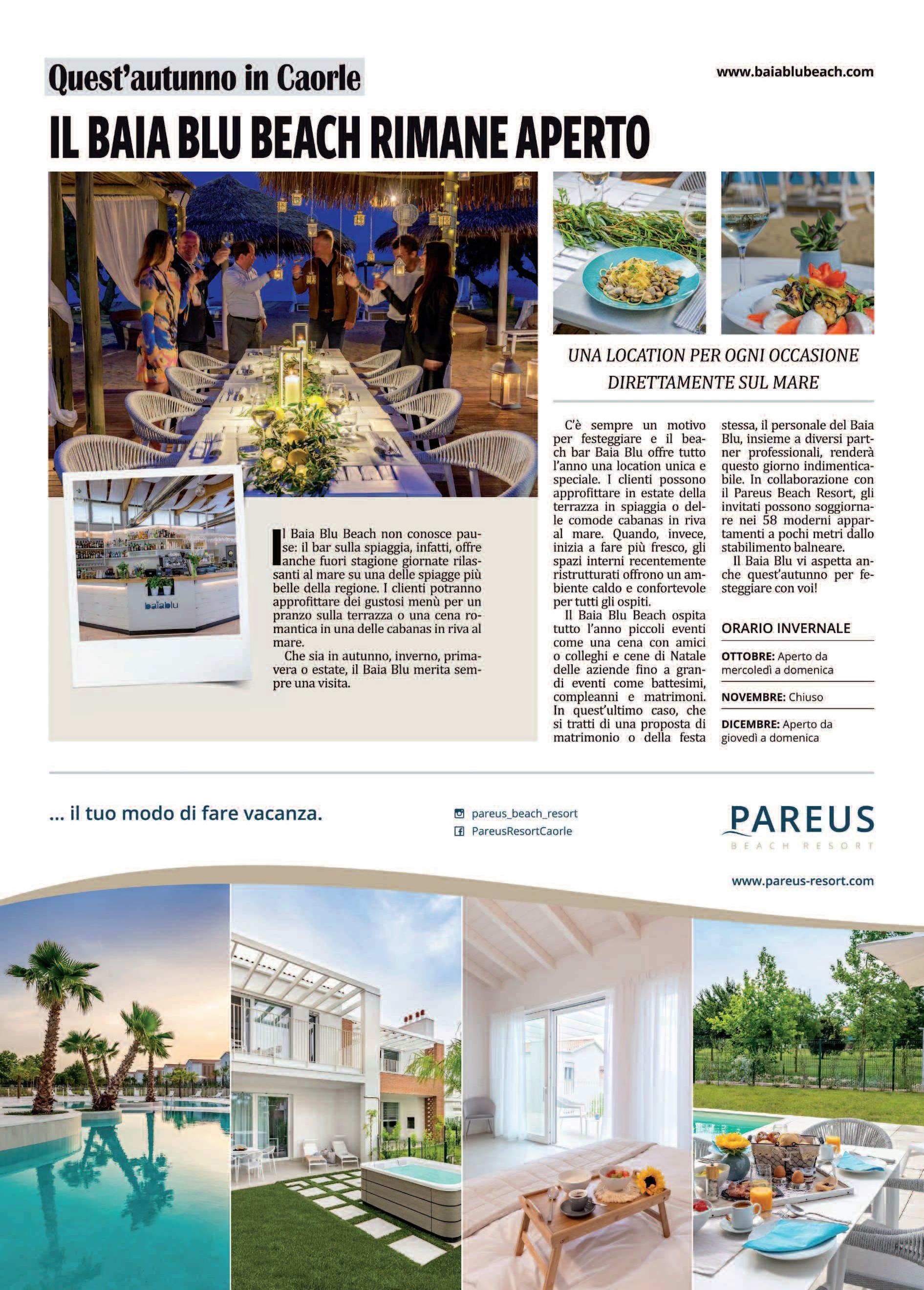 Le manifestazioni sul finire di set tembre, dal Roll’nFlat, allo stage na zionale di Karate, alle finali nazionali Cadetti di Atletica leggera, hanno portato migliaia di presenze extra balneari (anche perché le tempera ture troppo fredde hanno sconsiglia to i bagni in mare) in un periodo che però ha contrastato con la necessità di chiudere anzitempo o per stan chezza degli operatori, o per rispar miare sui costi energetici e il già pro grammato fine lavoro del personale dipendente