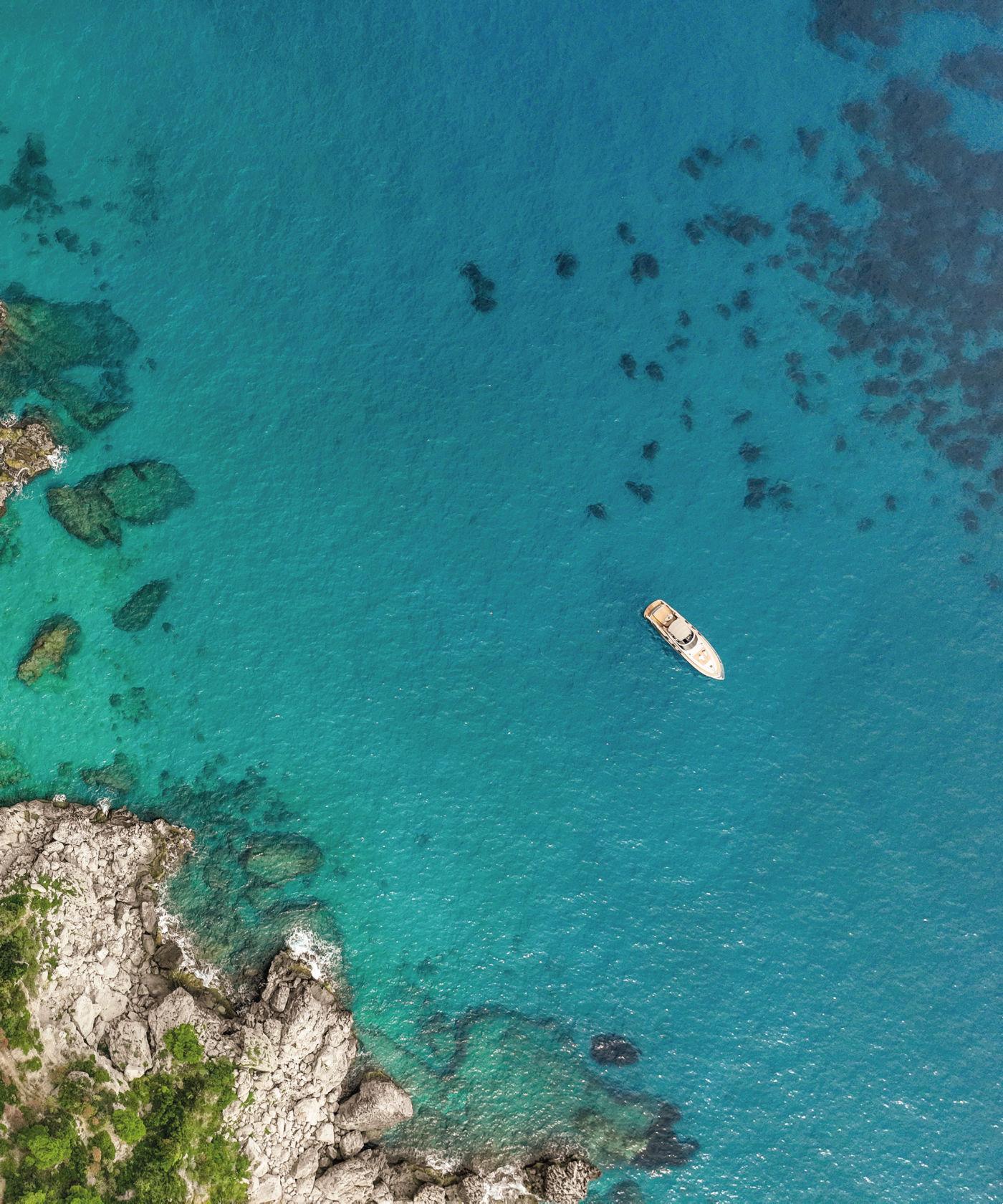 Cruising around the island, our knowledgeable crew will highlight Capri's coastal treasures, including the Grotta Meravigliosa, Grotta Bianca, Grotta Rossa, and the iconic Faraglioni and Natural Arch rock formations. You'll also have the chance to see the ancient ruins of Tiberius’ Villa, the contemporary Villa Malaparte, Fersen’s Villa Lysis, and the historic Saracen forts. Throughout the journey, enjoy engaging anecdotes and commentary about the island’s rich history and its famous residents.