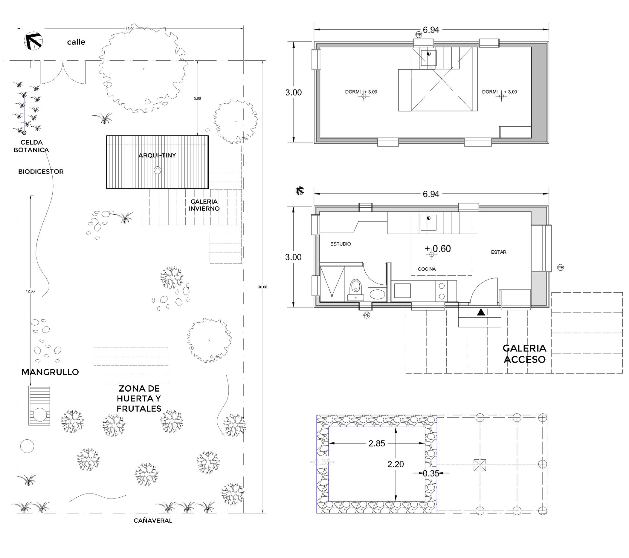 Las dimensiones y espacios del proyecto fueron estudiados en base al concepto de tiny house o pequeña casa, con un sentido de cobijo y máxima relación con la naturaleza.