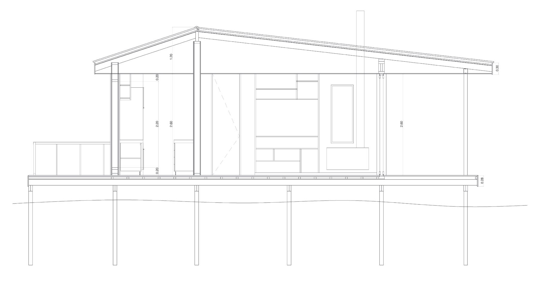a su bajo impacto en el ambiente, su capacidad de adaptación a las condiciones climáticas y al paso del tiempo. El trabajo llevado a cabo fue un proceso de exploración, reconocimiento topográfico, estudio de la flora y fauna que habitan el lugar. El uso de la madera no solo se utilizó para estructurar la casa, sino también por la calidez que suma al espacio, así como por la temporalidad que le dará a la obra, ya que la misma irá mutando a lo largo del tiempo. Entendiéndose así la casa misma como un proceso de transformación, relacionado al sitio, a la vegetación, a las estaciones, la naturaleza circundante. Una vivienda elevada, liberando el terreno para posibilitar corrientes de agua, aire, plantas y animales, con el objetivo que el habitar humano no estorbe a la naturaleza. El individuo debe adaptarse al espacio, sin generar alteraciones en el mismo.