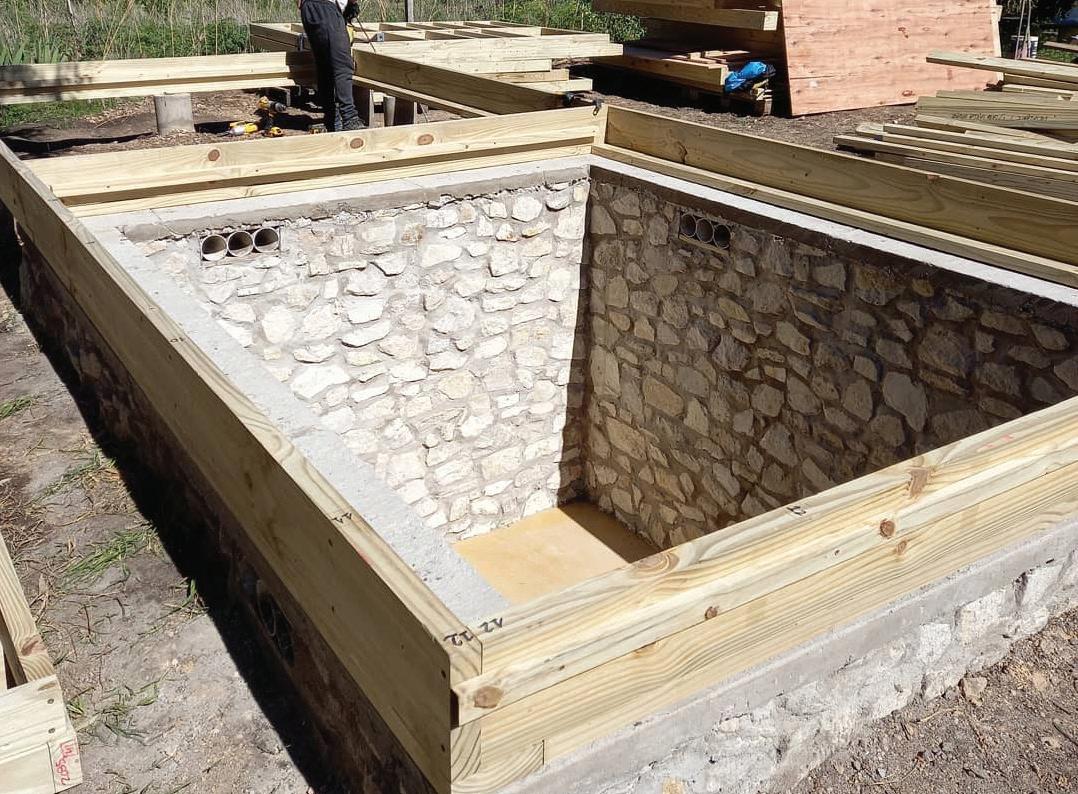 110 mm. agujereado), desde donde el agua vuelve saneada al suelo. Las aguas negras pasan por un biodigestor de 1.700 litros, en donde, para reducir la presencia de contaminantes, se degrada la materia orgánica presente en las aguas residuales mediante un proceso denominado “digestión anaeróbica”, para luego continuar a la celda botánica y el lecho nitrificante.