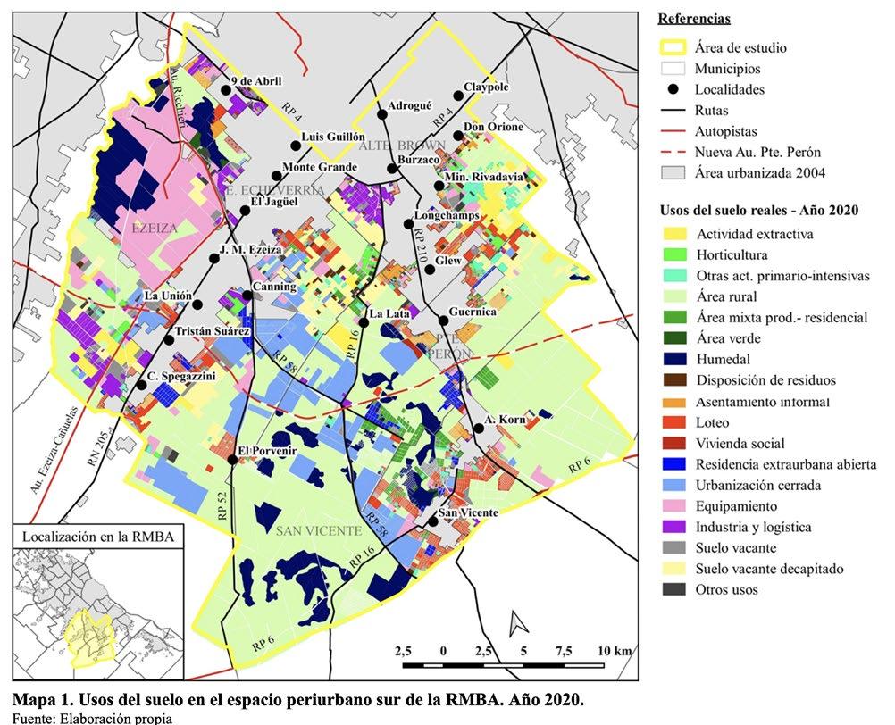_En La gestión del suelo e implementación del proyecto urbanístico en Guernica, Presidente Perón, Provincia de Buenos aires (2020-2022). Subsecretaría de Hábitat de la Comunidad_ Ministerio de la Comunidad de la Provincia de Buenos Aires Los datos son elocuentes. En el periurbano sur, en el periodo 2004-2020, el 60 % del crecimiento del área residencial corresponde a urbanizaciones cerradas (UC) -Suburbanización