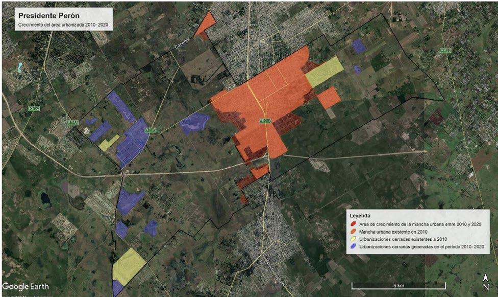 dida por las urbanizaciones cerradas (aproximadamente 875 hectáreas en 10 años, lo que representa un 175% de crecimiento) que por la ampliación urbana de las localidades de Guernica y Villa Numancia de carácter abierto (516 hectáreas, 25, 6% respecto a 2010).