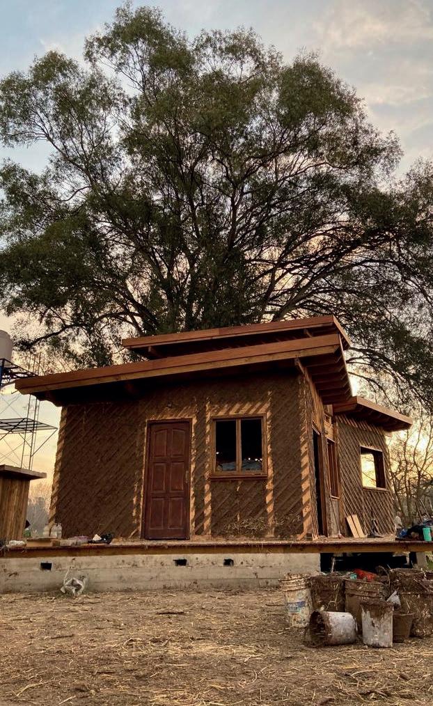 El sistema de quincha de fardos de cortadera fue desarrollado por el arquitecto Armando Gross, responsable del Taller de Bioconstrucción (TABI) de la UNC.