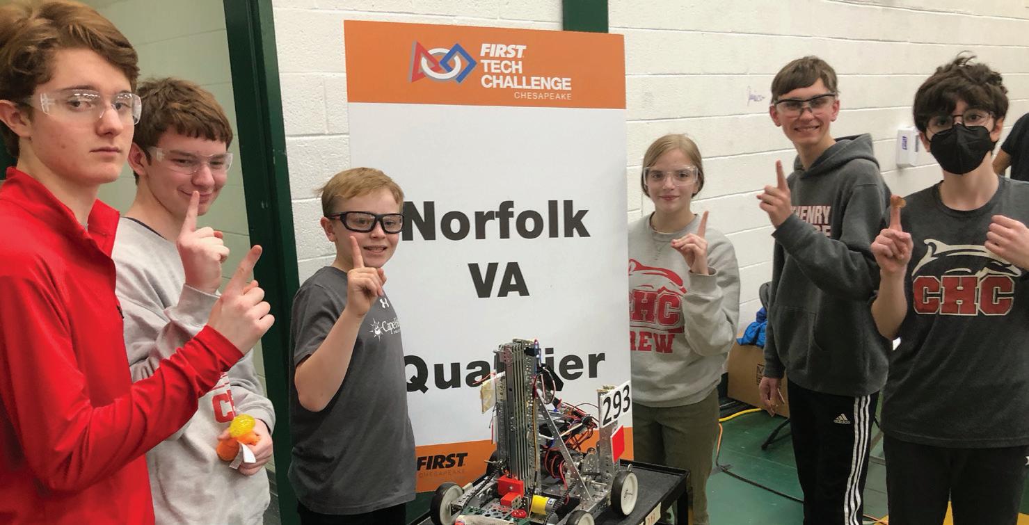 Cape Henry Collegiate’s robotics team competed against more than 200 middle and high school students at the FIRST Tech Challenge at Norfolk State University in January. In order to compete, the team built a small robot that can navigate obstacles and pick up and move cones using a claw. The Dolphins won the best-of-three championship in back-to-back matches, and are now working on a robot that can operate underwater for a competition in May.