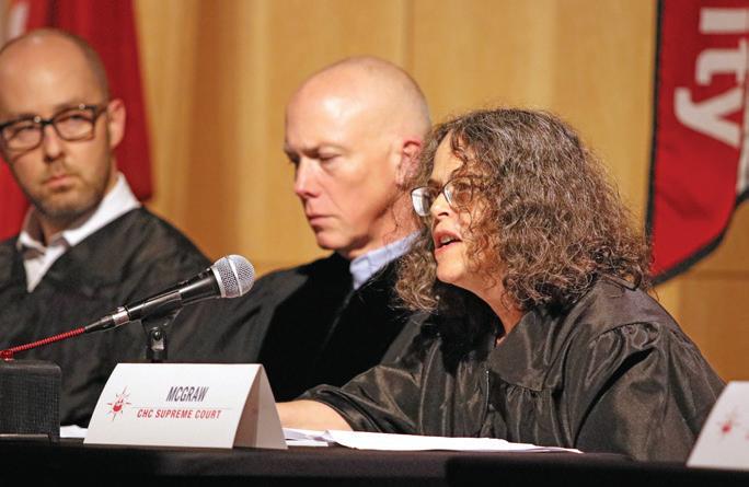 The students spent about a month preparing for the evening by reviewing the legal briefs submitted in the cases and practicing their arguments in front of classmates, faculty members and attorneys, many of whom participated in the program when they were Cape Henry students. Each student had ten minutes to make their case. Doing so required the students to think on their feet, as the justices frequently interrupted the students’ prepared remarks with questions about the facts of the case, previous Supreme Court opinions and the effect of a potential ruling on future situations.