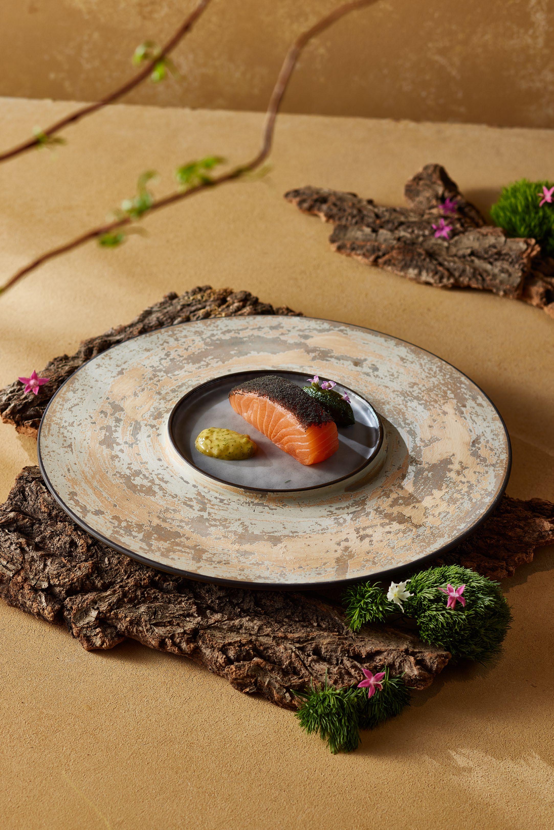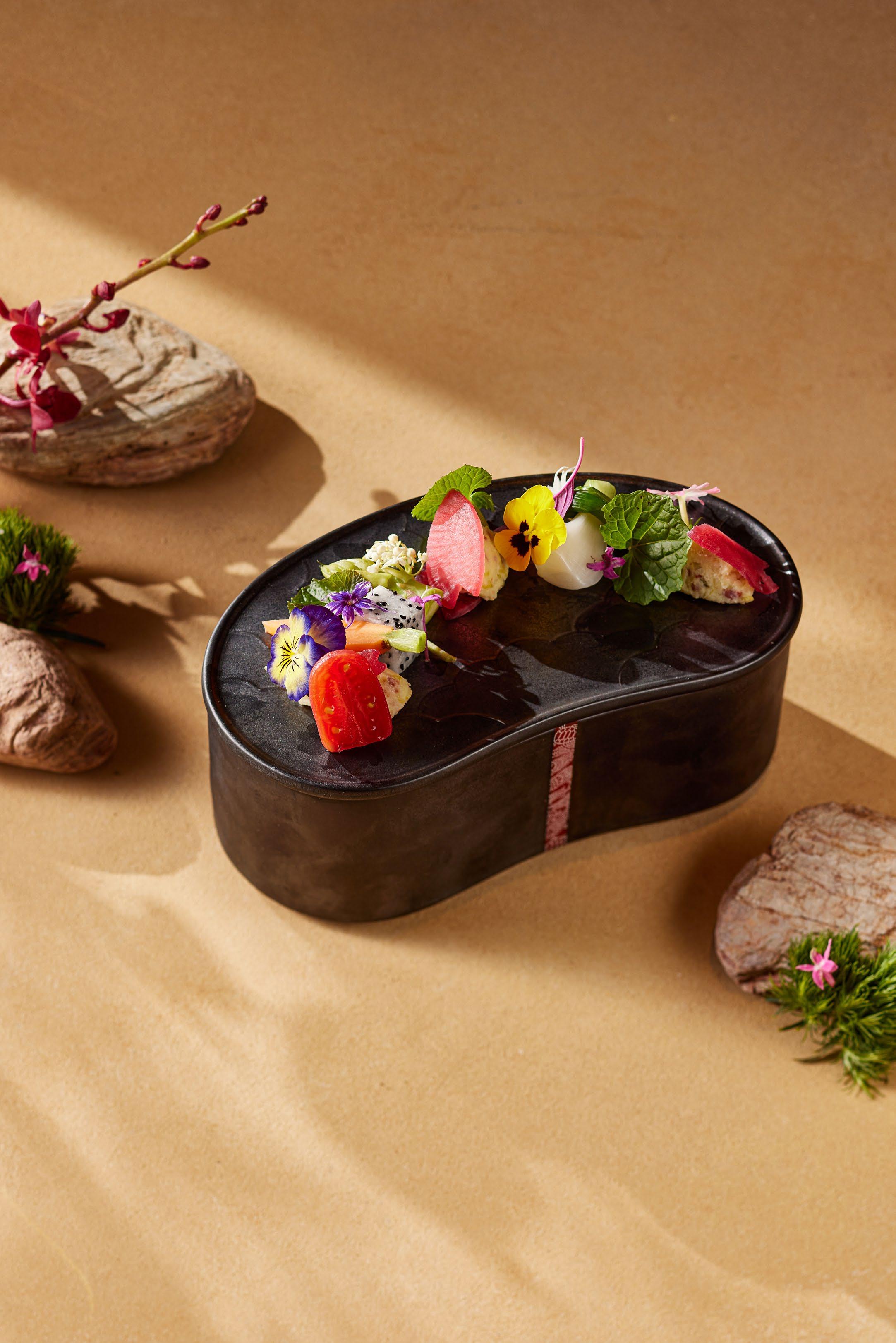 Confit Potato, Rock Sprout, Baby Corn, Crosne, Beetroot, Umeboshi Thịt Bò Wagyu Yaeyama Kyori Khoai Tây Hầm, Mầm Đá, Ngô Non, Củ Sùng Thảo, Củ Dền, Mơ Muối Nghiền
