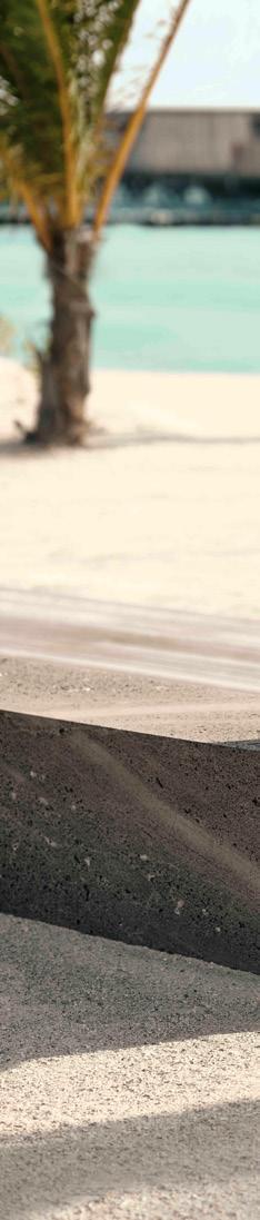 IS TO ENHANCE THE EXPERIENCE OF THE ASTONISHING SURROUNDINGS. IT MAY BE BY FILTERING THE LIGHT, FRAMING THE VIEWS OR CREATING VARIOUS NARRATIVES FOR EACH BAREFOOT STROLL AROUND THE ISLAND. ARCHITECTURAL LINES AND TEXTURES MEDIATE THE CONNECTION BETWEEN NATURE AND THE HUMAN BODY. RATHER THAN SCULPTURES, WE LOOK FOR POETIC SPACES.”