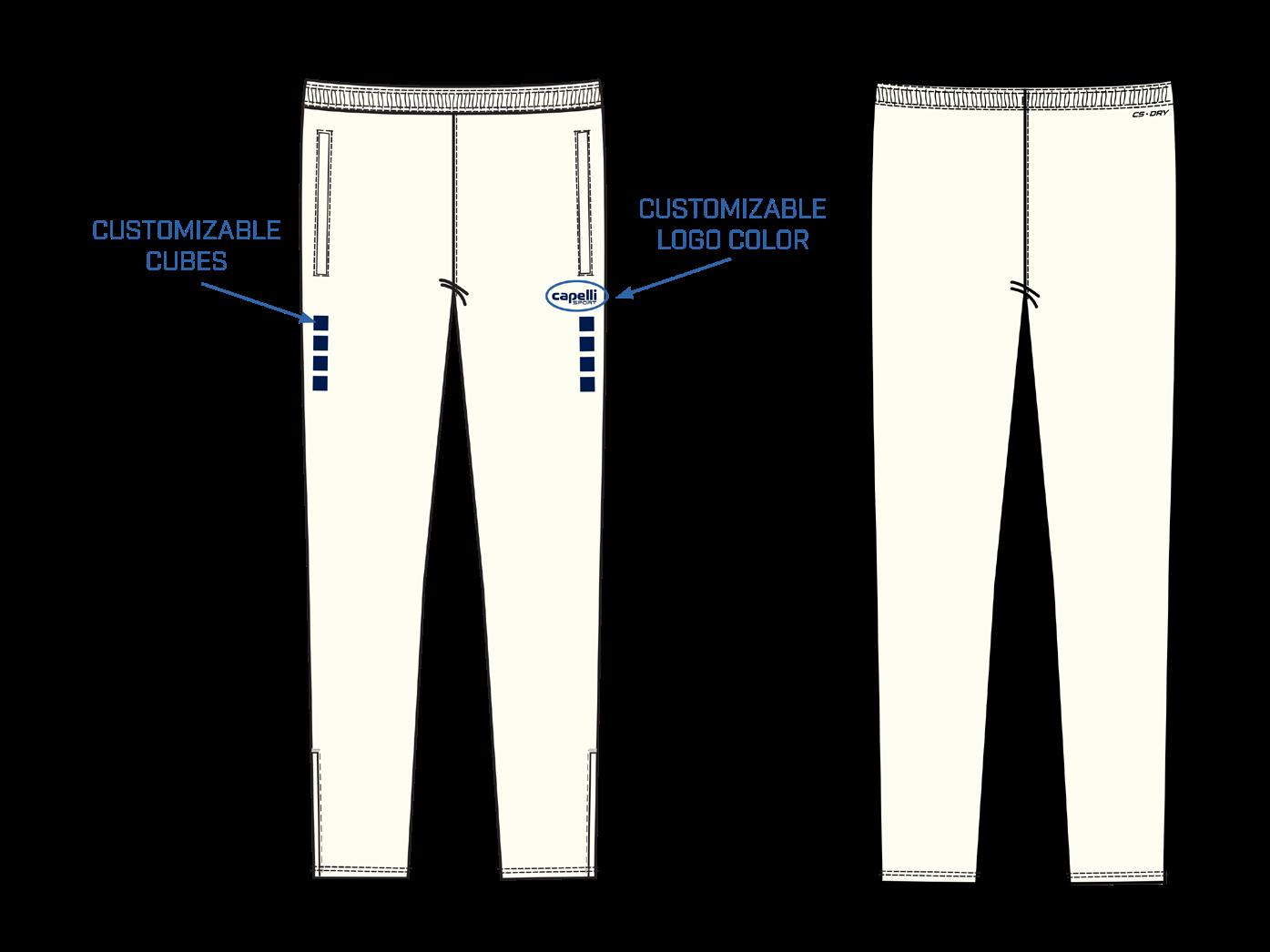Adult: ■ 100% Polyester Pique ■ Embroidered Logo ■ Hidden Side Leg Zips ■ Inside Waistband Drawcord