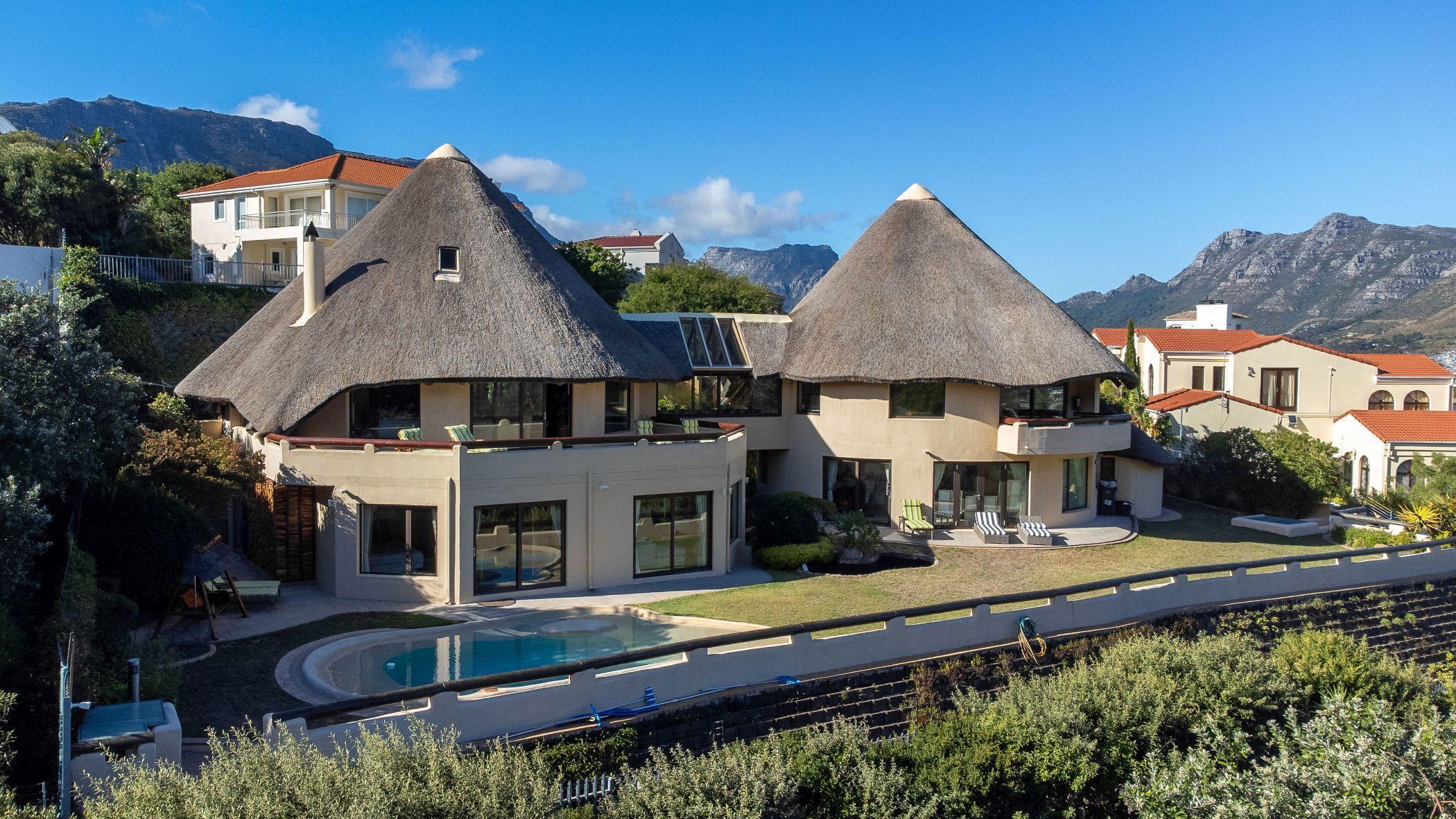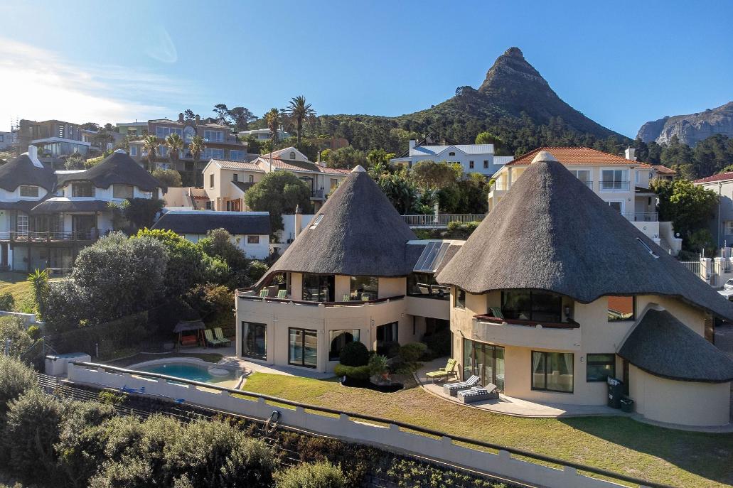 Experience the essence of African safari living with this distinctive lodge-style hom e that seam lessly blends oceanfront luxury and adventure,providing breathtaking panoram ic views of Hout Bay.