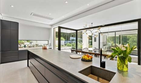 Light streams through the north-facing windows that overlook the 21m pool and garden. Expansive double-glazed folding glass doors maintain a comfortable temperature throughout the year. The kitchen is at the heart of the home and has been immaculately designed for ease of use with ample space to entertain.