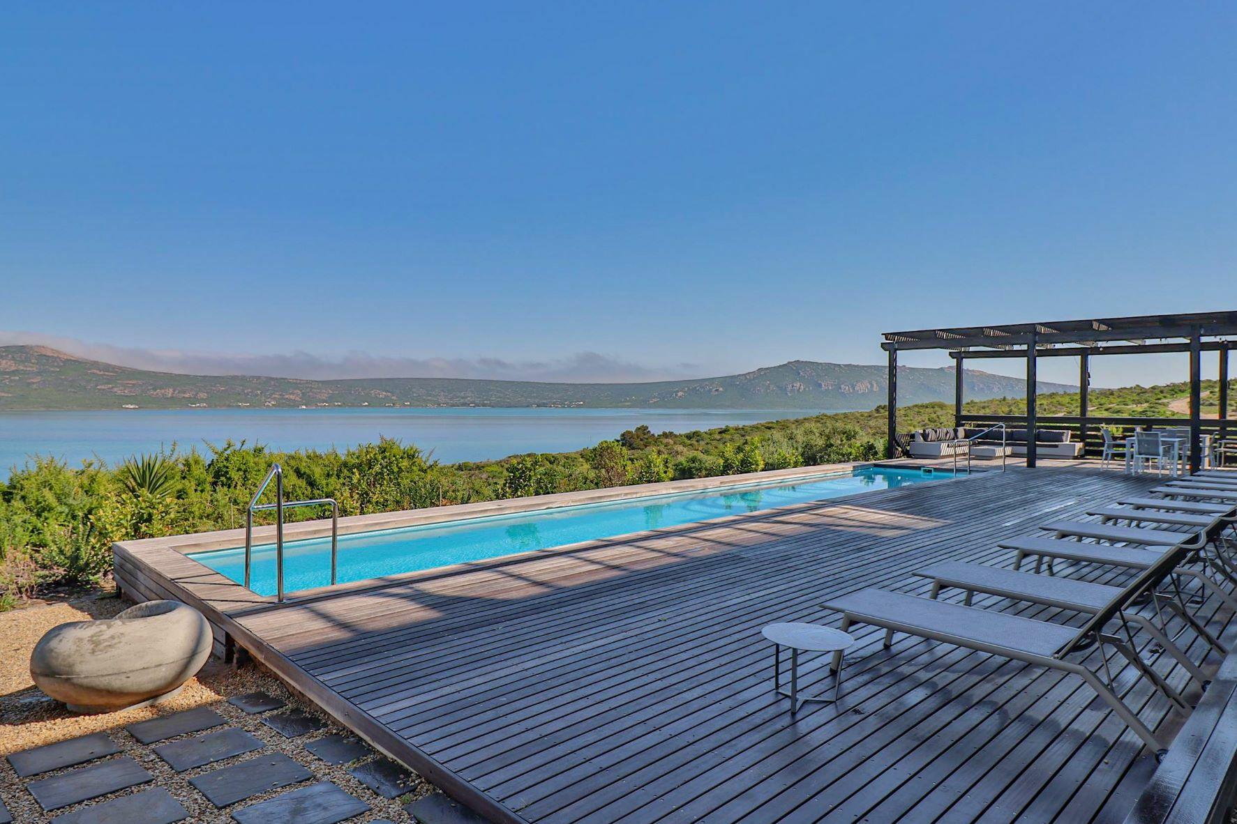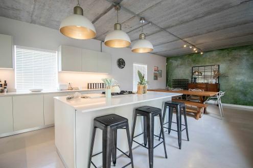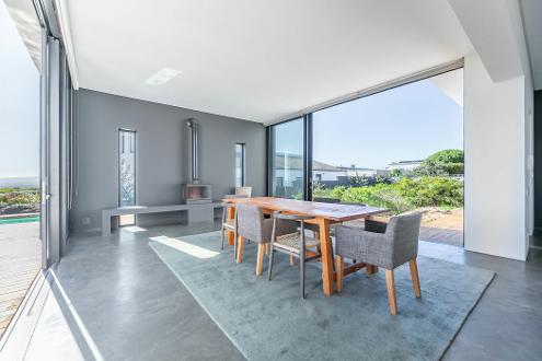 Chic and m inim alistic this stylish hom e breathes tranquillity and boasts glorious views The open-plan designer kitchen presents m odern white finishes.The upstairs balcony boasts sweeping views of the fynbos and unique West Coast sunsets.