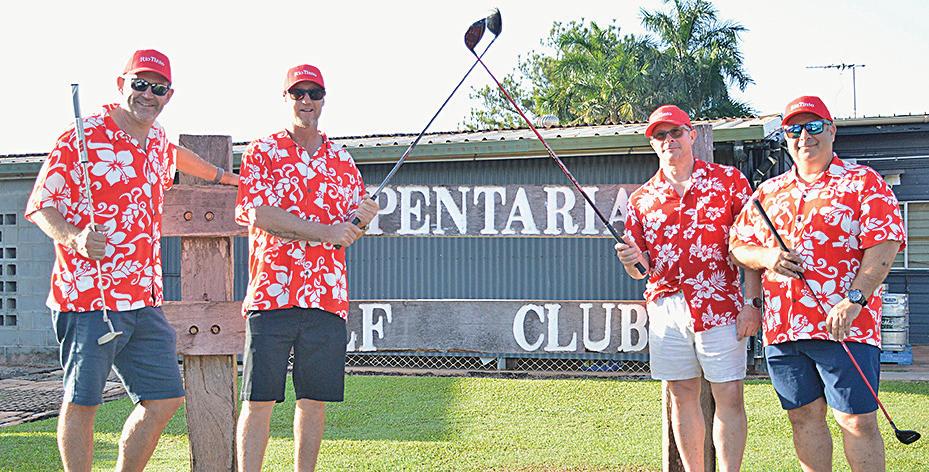 Glenn and Kirra Egan, and Tacita and Matt de Tournouer prepare to tee off with more than 70 other players for the Weipa Men’s Mental Health Golf Day on Saturday. See who else we spotted on Page 14.