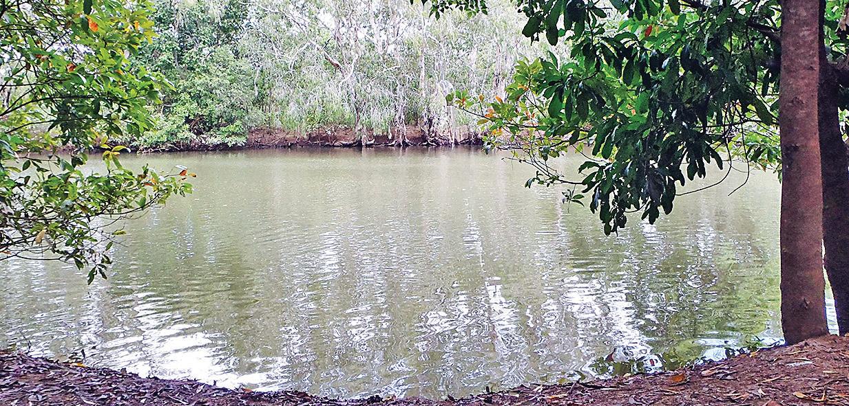 TSRA rangers take water samples on Ugar Island; the results detected cane toads.
