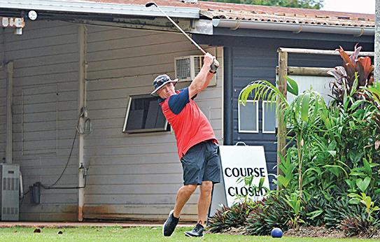 Warren Brewer tees off in the hunt to reclaim his Weipa Goodline Open A-grade men’s champion crown at Carpentaria Golf Club.