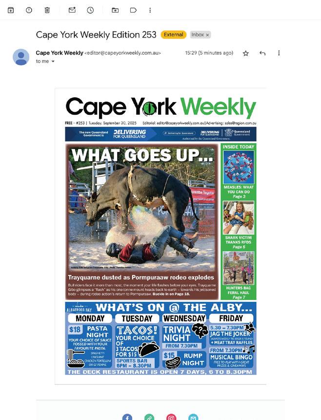 Cape York Weekly is part of the Region Group capeyorkweekly.com.au facebook.com/capeyorkweekly
