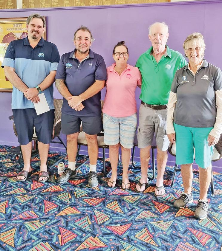 Jamie Hutton, Mark Jorgenson, Sharon Gardiner, Sandy Nelson and Vicky Molloy after the Rio Tinto Cup at Weipa on the weekend.