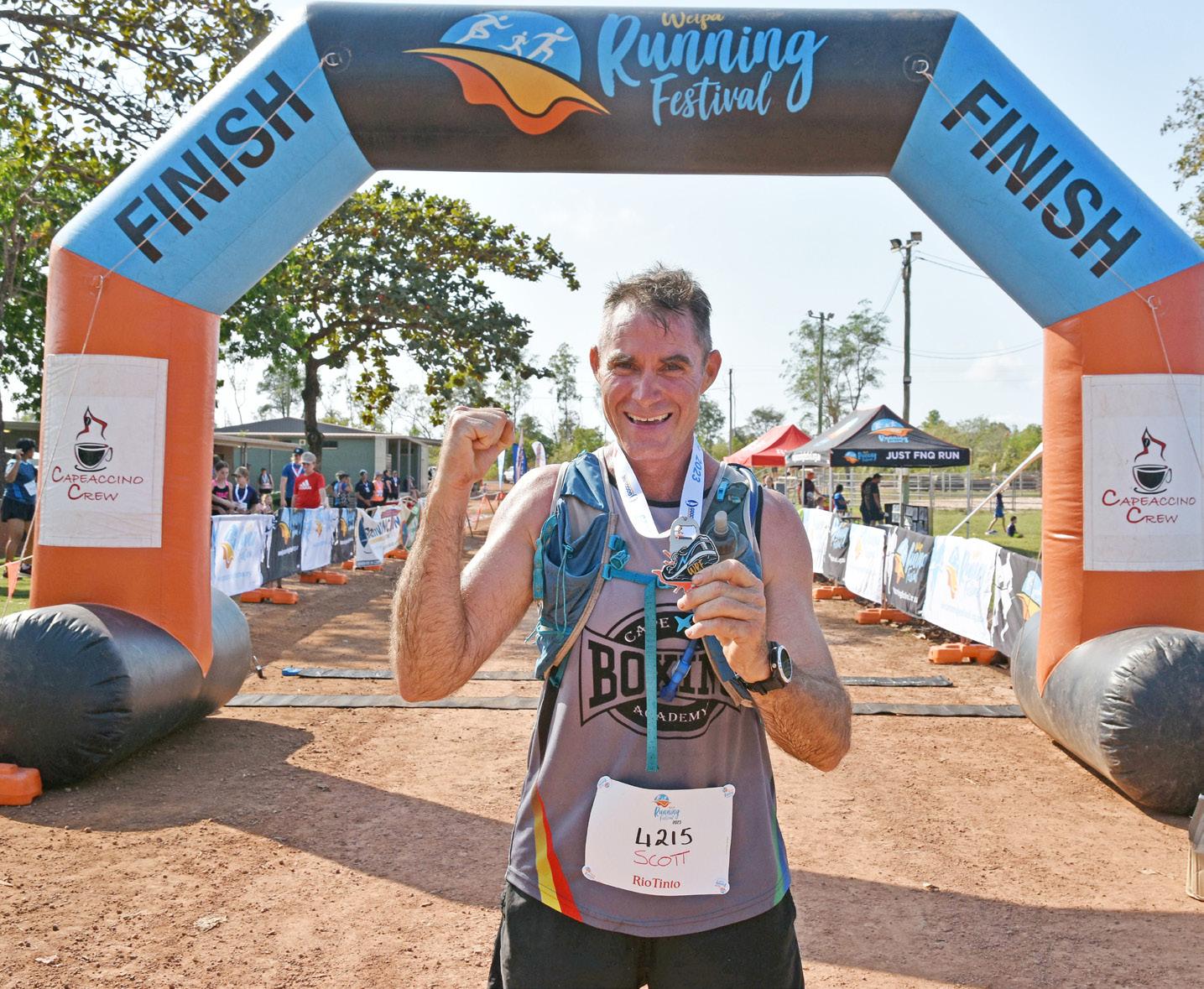 “I didn’t get to bed until 12.30. Then the alarm went off at 4,” Scotty said. The reason for an early Sunday? He had to be at the start line to run the marathon at the Weipa Running Festival.