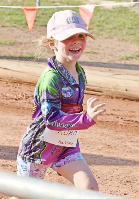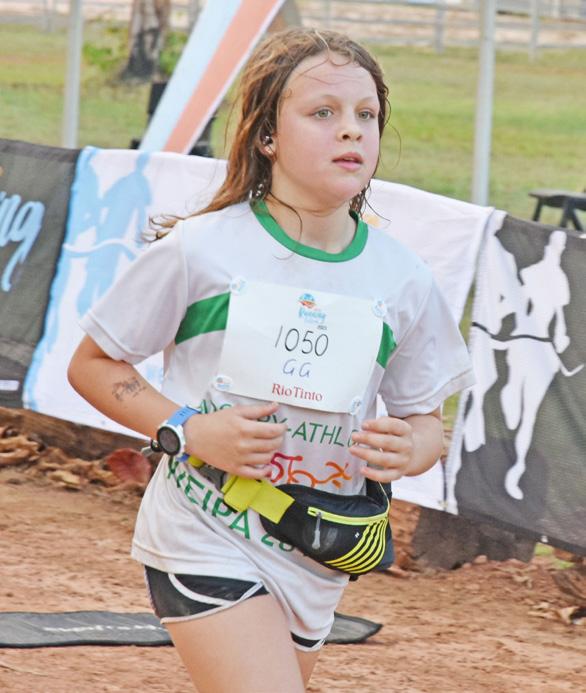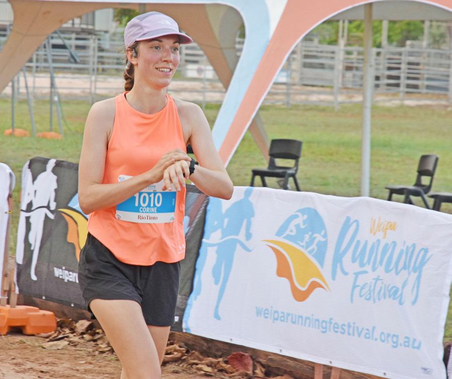 Tony Clarke put a gap on the blokes in the 10km run, but it was Weipa teenager Bridie Maher who finished first in a slick time of 46:19.