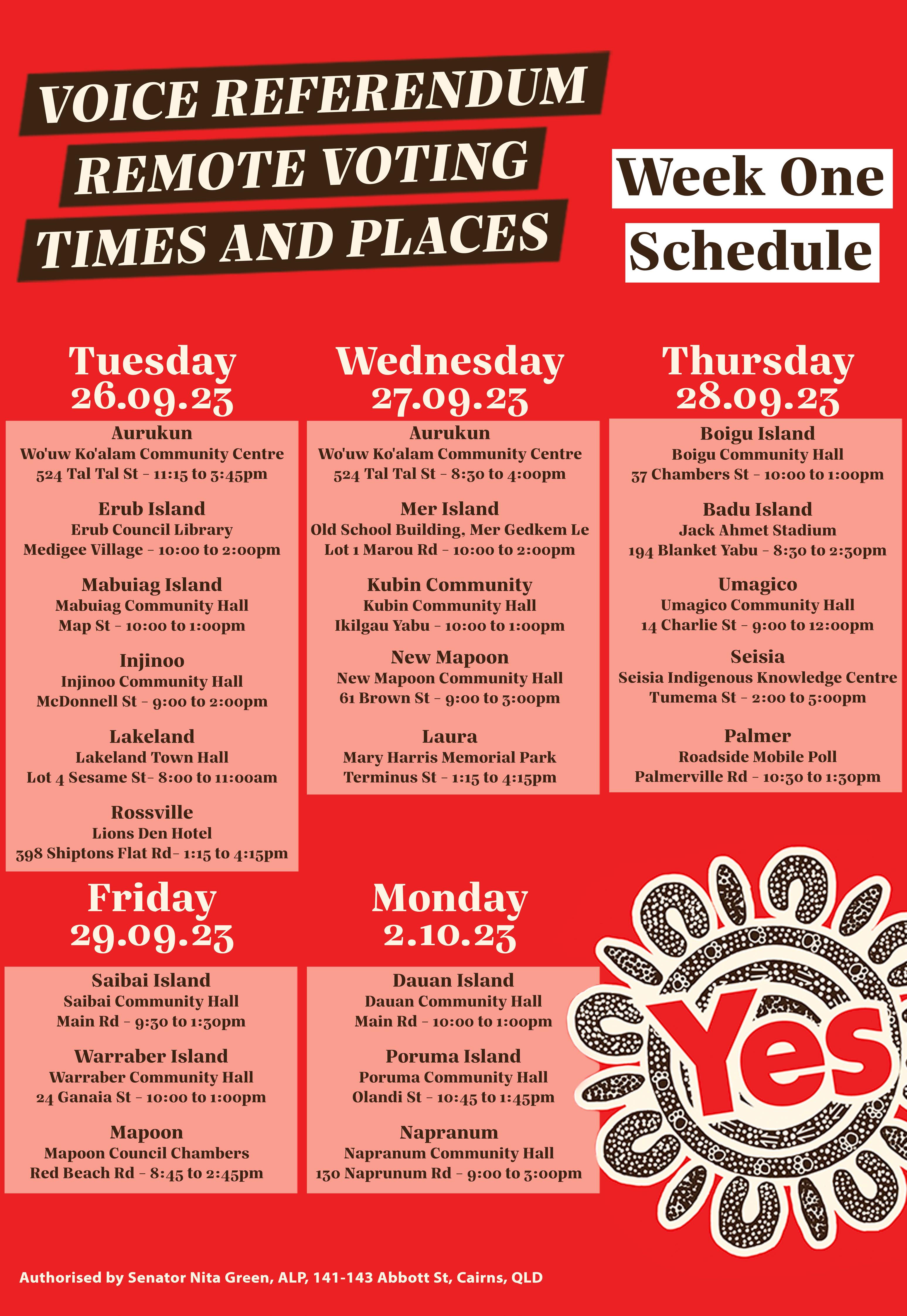 But nowhere does it say that voting actually starts today in some Cape York and Torres Strait locations.