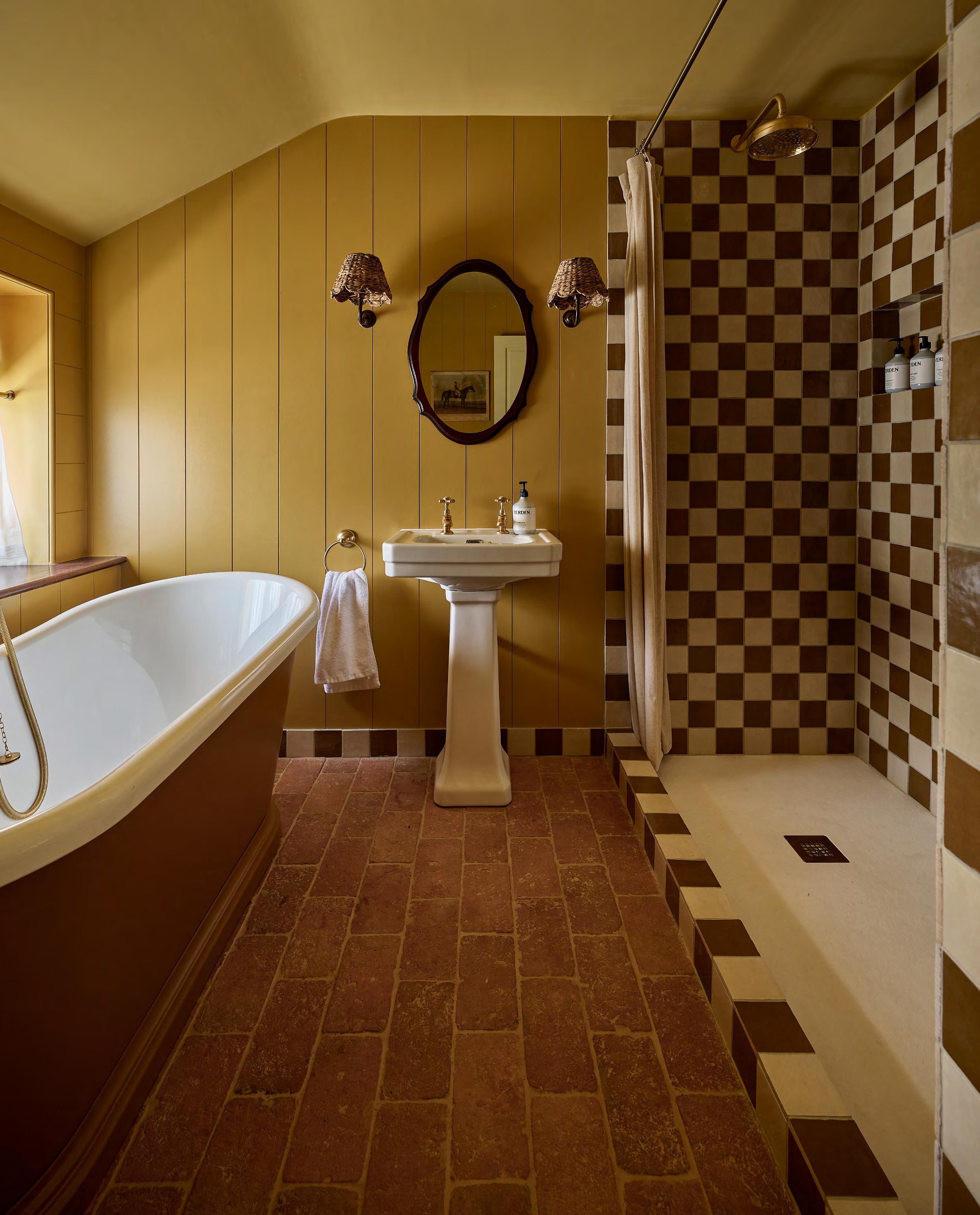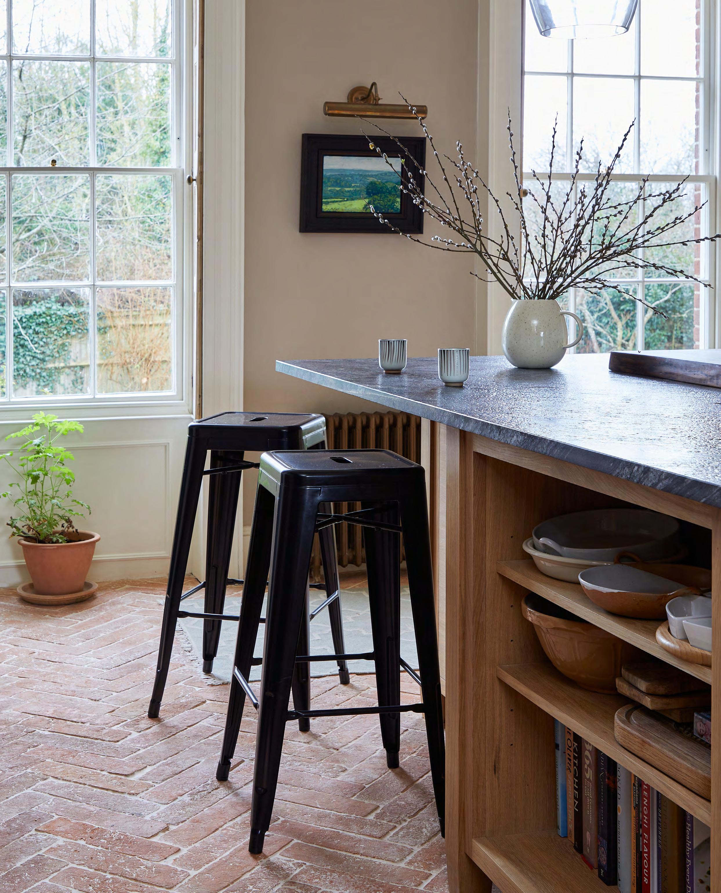 A cabochon floor brings instant heritage appeal. Think Parisian hallways, London townhouses and that ever classic contrast of light and dark. Formed by inserting a smaller tile between cut tile corners, it's a considered detail we love.