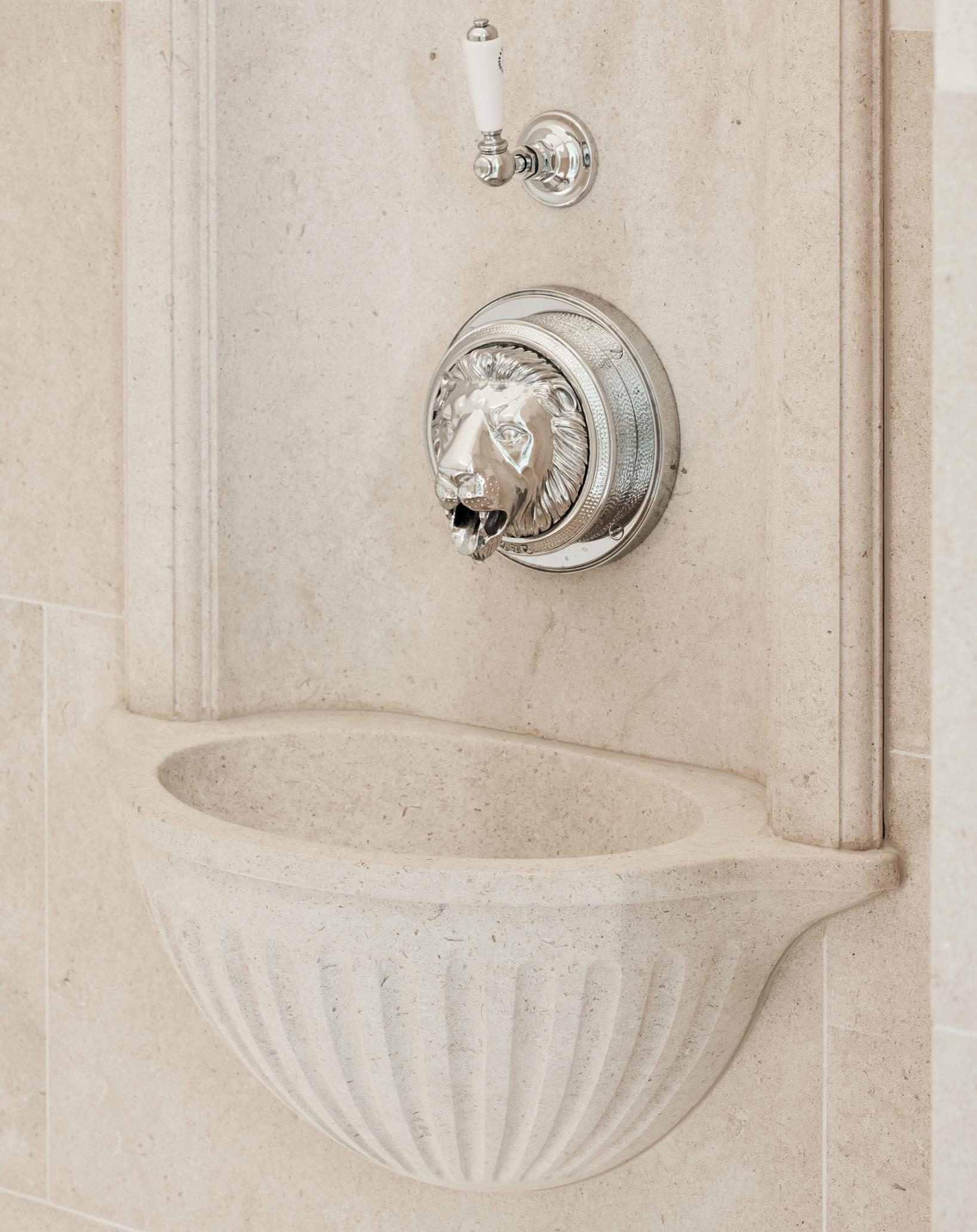 This remarkable Gloucestershire project showcases Ca’ Pietra Artisans’ expertise across a suite of leisure spaces designed by Yiangou in collaboration with Annabel Elliot Interior Design. For the swimming pool, sauna, gymnasium and adjoining changing rooms, our team cut and finished a carefully considered palette of natural stone to create a sense of elegance, durability and cohesion throughout. From the poolside floors to the wellness areas, each element was crafted to complement the architectural vision while delivering a refined and timeless finish.
