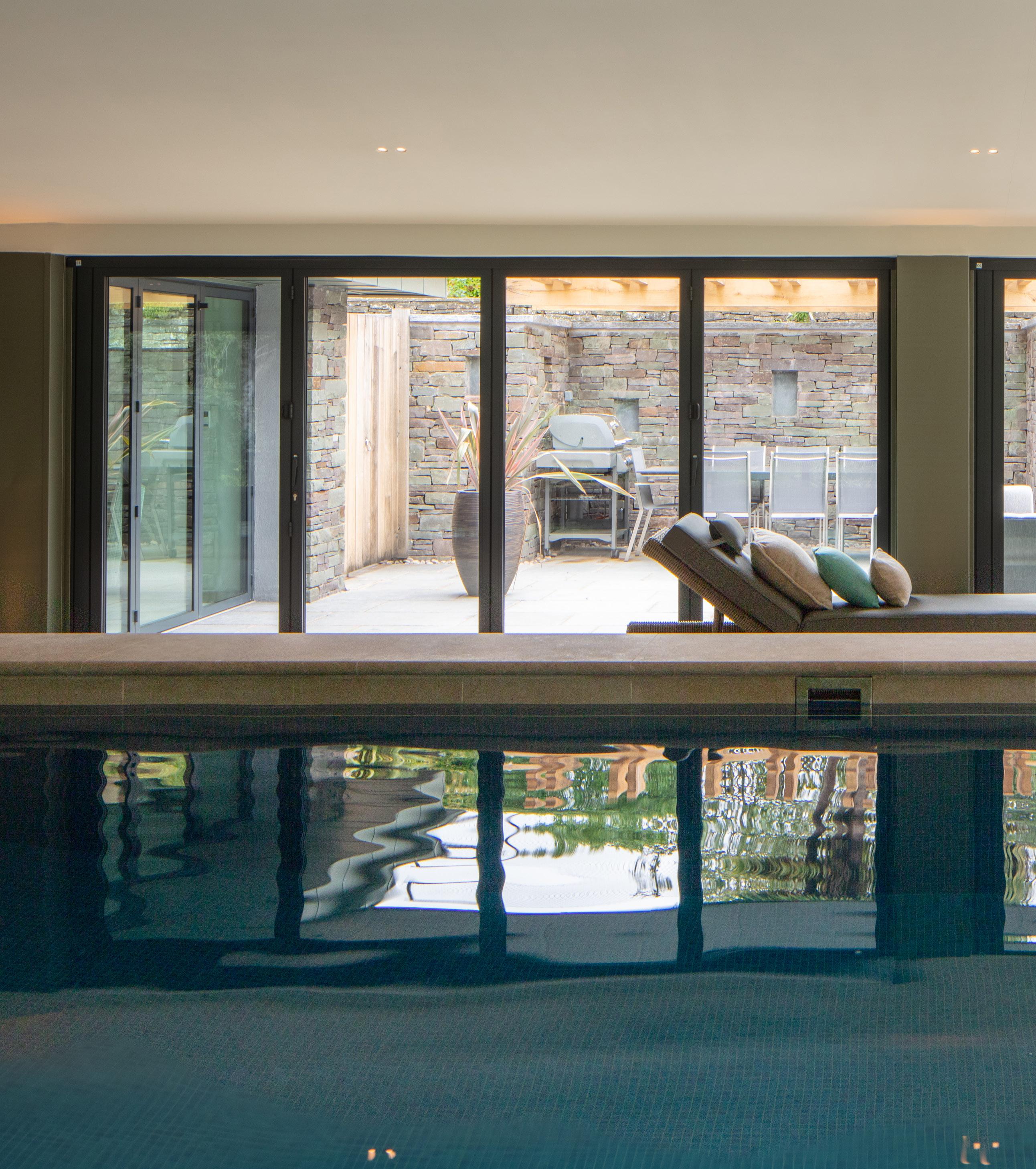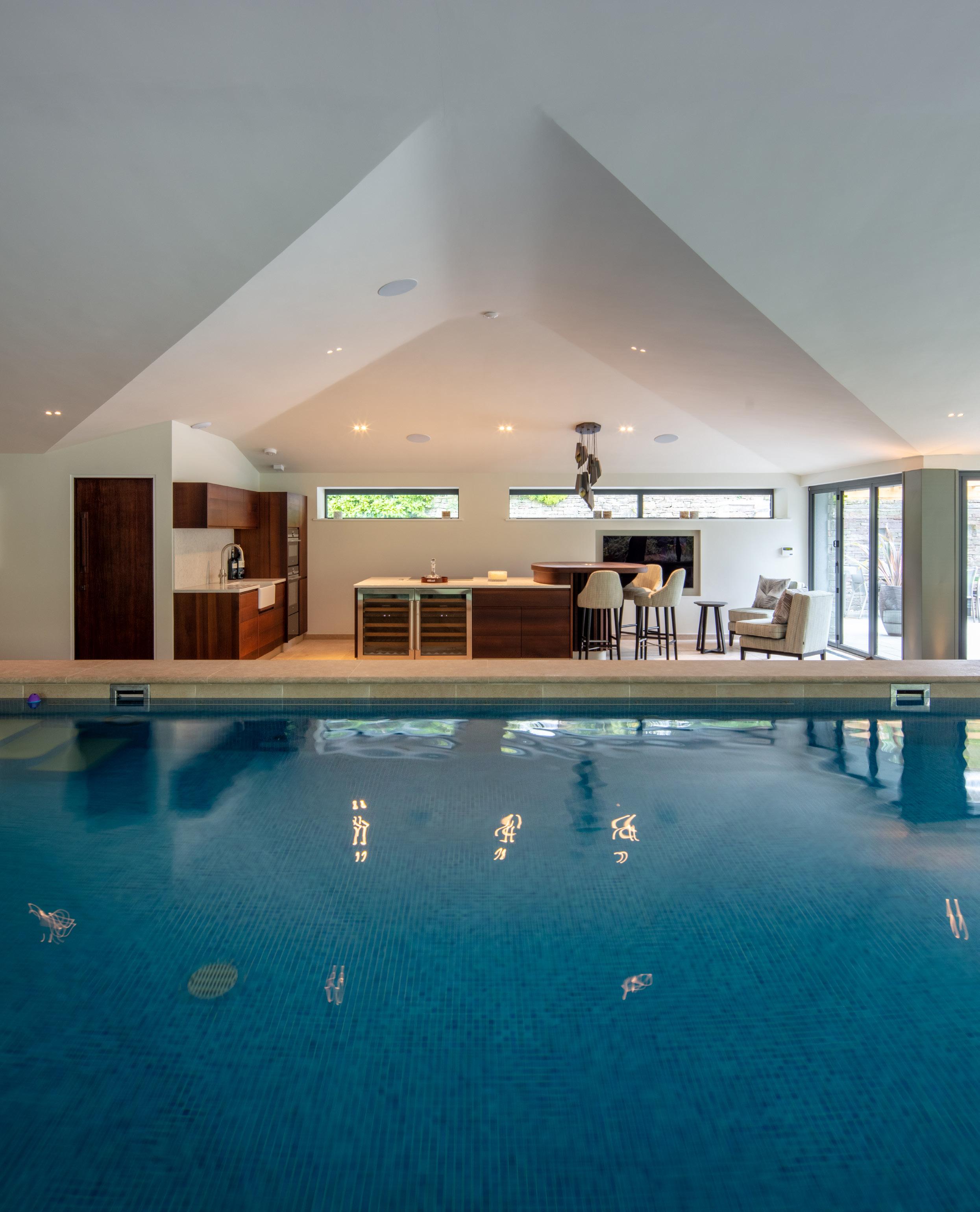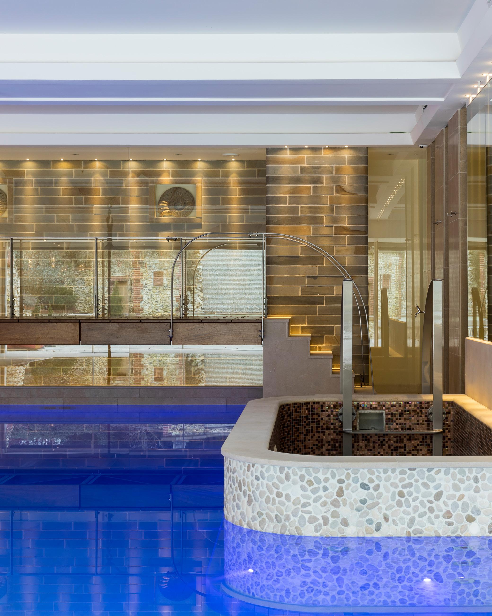 A selection of natural, bespoke stone was used within this impressive pool and spa installation, including Wychwood limestone for the pool, changing rooms and WC areas and Trusloe limestone cladding within the sauna.