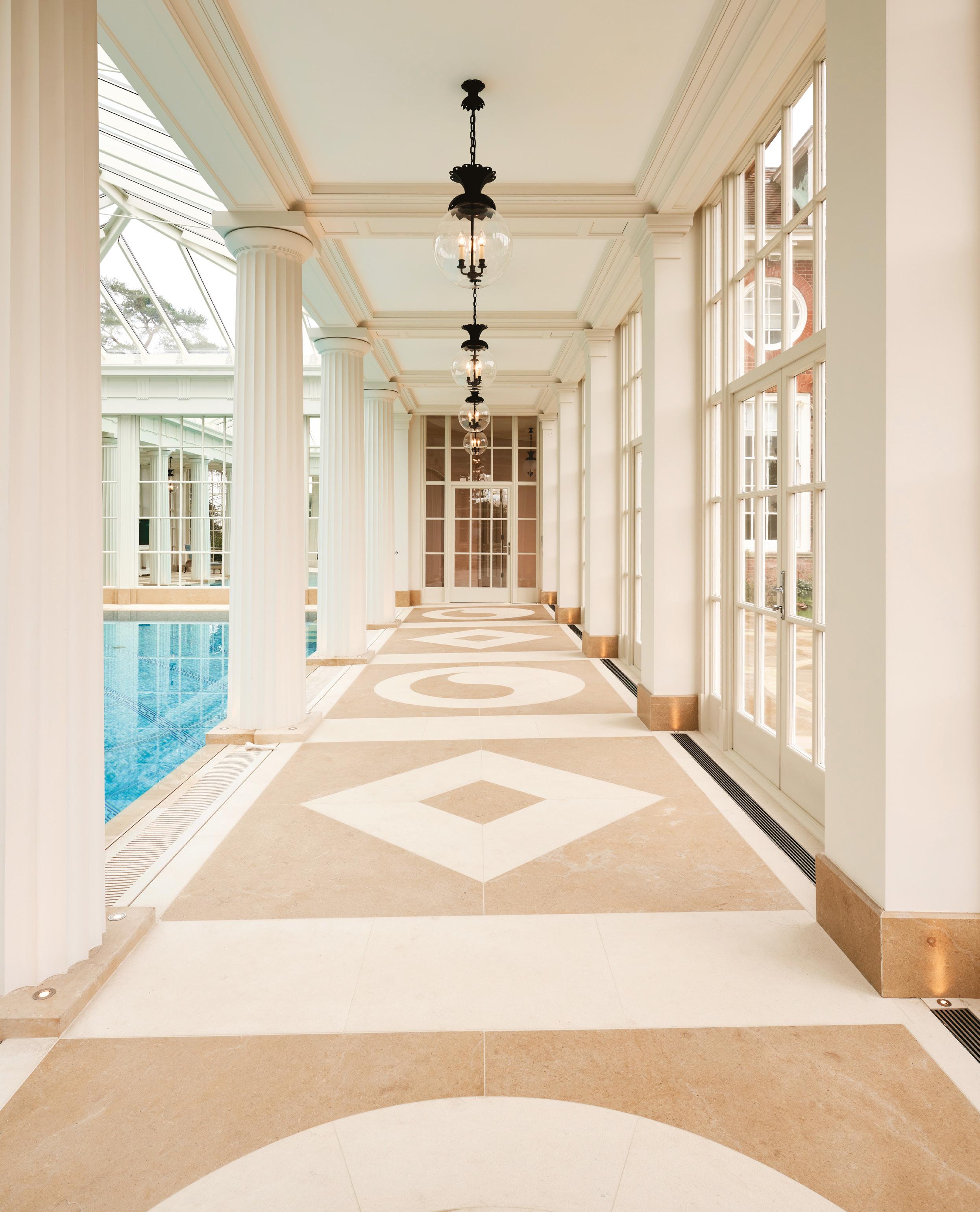 A stunning period property set within the English countryside, this home is full of character and charm. Even more so now it features Ca’ Pietra Artisans’ Buscot limestone and Richmond limestone for its impressive pool area and hallway.