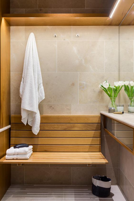 The homeowner commissioned Ca’ Pietra Artisans to supply limestone, porcelain tiles, glass and pebble mosaics to complete the luxurious spa look.
