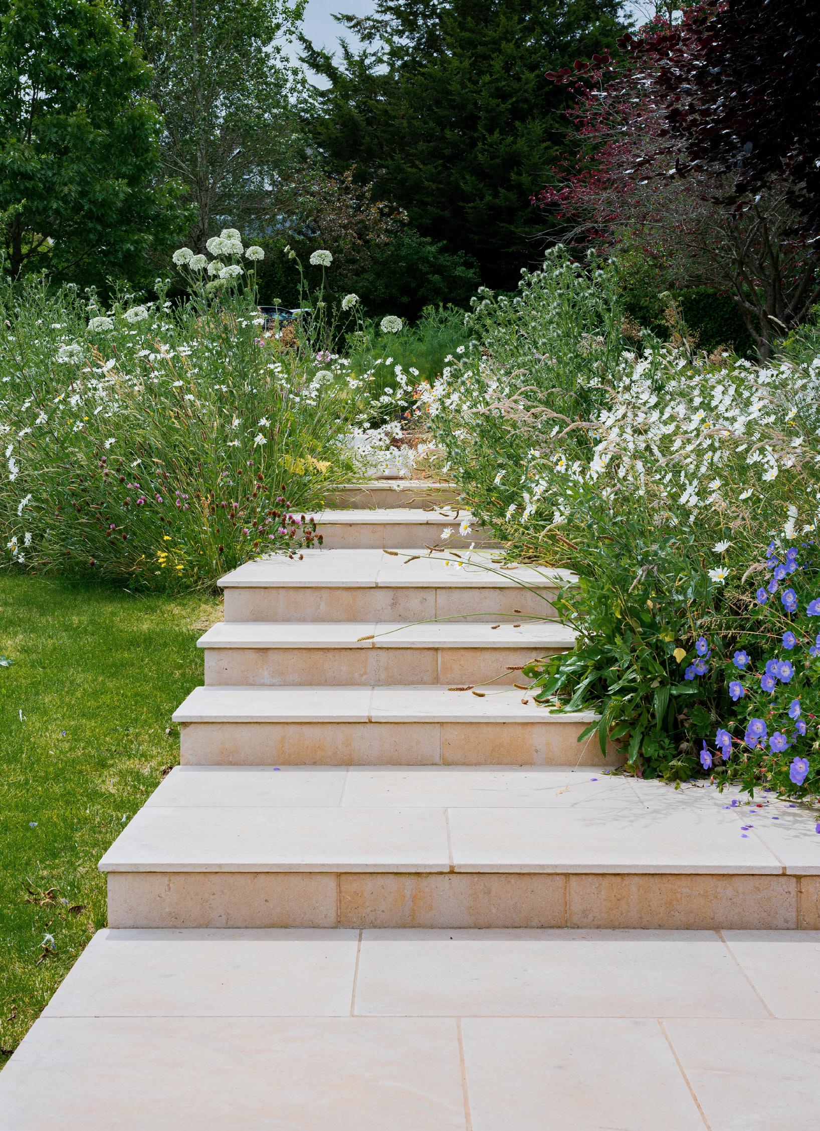 A hard, compact stone, it is ideal for external paving with its low-slip properties and natural grey-fawn colouring. The subtle fossil markings also add to its character, enhancing the charm of this magnificent building with far-reaching views across the sea.