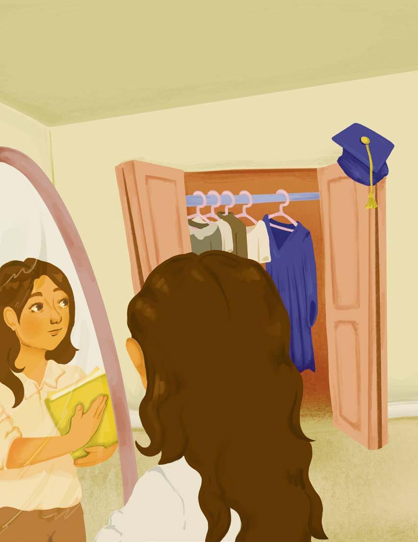 COLUMNS EDITOR SARA BRINKAC (SHE/THEY) ILLUSTRATOR JASMIN LINTON (SHE/HER)drenched in rain and tossed like salad in the wind. It has survived. Not by stopping these forces, but by accepting them. Through allowing the snow to insulate it, letting the rain hydrate it, and releasing that which does not serve it to the wind, the plant has grown.