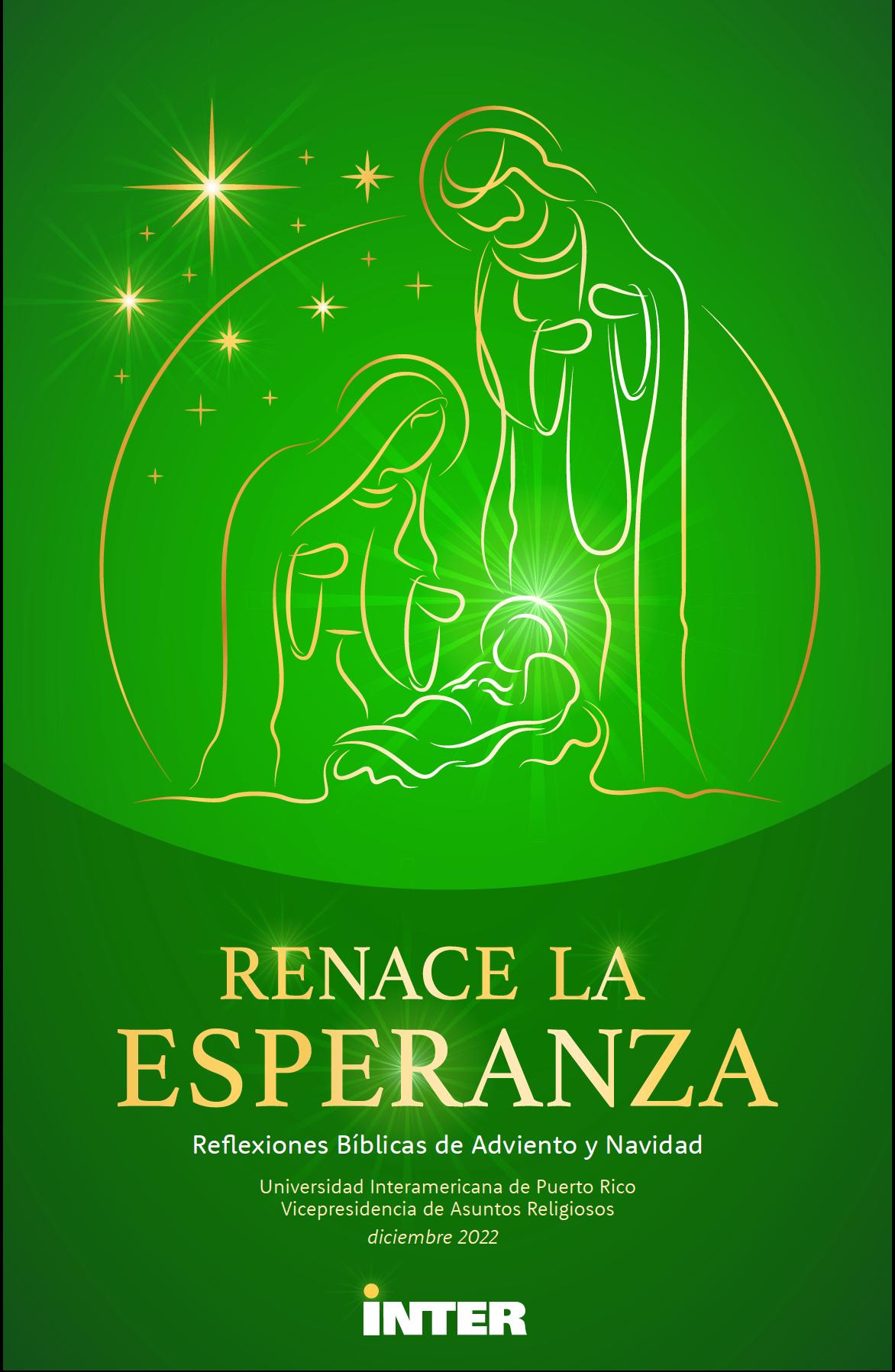 La Vicepresidencia de Asuntos Religiosos de la Universidad Interamericana de Puerto Rico como es ya una tradición, ha preparado el libro Reflexiones para Adviento y Navidad 2022 que le presentamos a continuación. En este libro encontrará hermosas reflexiones, escritas e inspiradas por nuestros directores y directoras de oficinas de capellanía, que le permitirá acercarse más al momento histórico y salvífico del nacimiento de Jesús. Le invito a que lo lea, a que reflexione, medite y celebre que, con el nacimiento de Jesús, la esperanza renace con cada nuevo día.