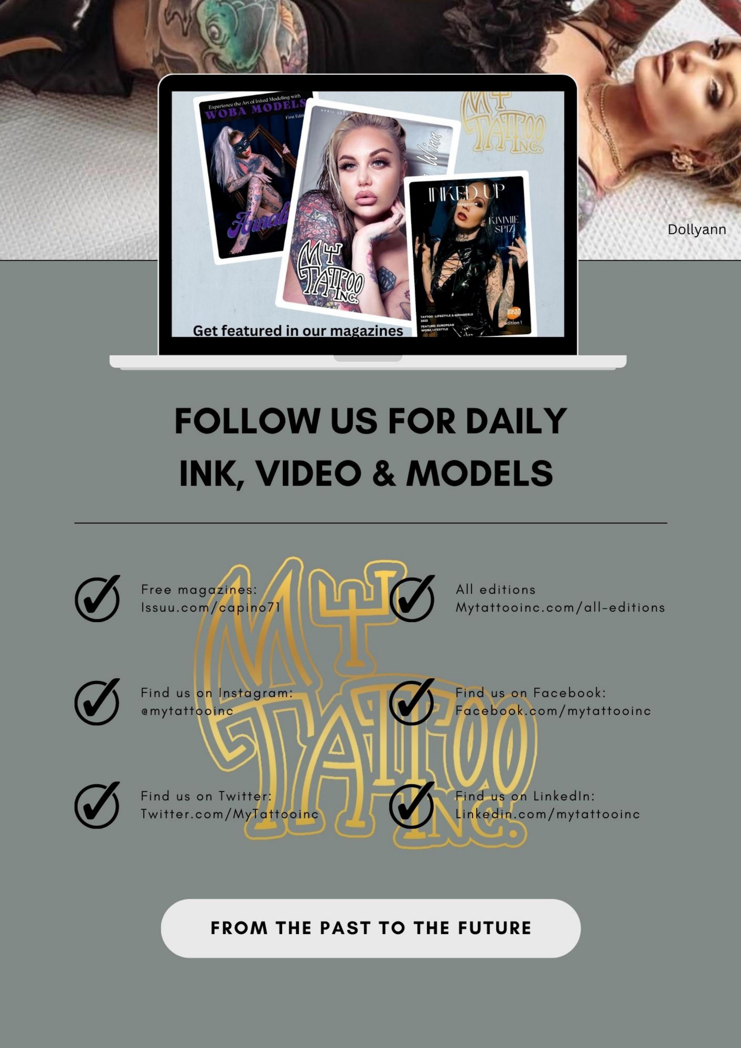 Greetings and welcome to Inked Up Magazine - your ultimate source for everything related to tattoo art, infused with stunning tattoo models! We are an online publication that focuses on presenting the finest Worlds tattoo art, spanning across a range of styles - from classic to contemporary. Lilou and Elegy Ellem, 2 fantastic inkmodels amongst others. Come along with us on a thrilling and immersive expedition into the universe of tattoo art, see awesome art from Alex Young, Gregory Juarez and get your sneak preview about The Big London Tattoo Show - only at Inked Up Magazine.