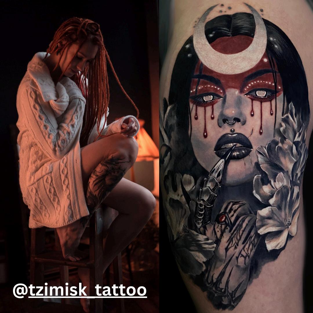 A: I put a lot of love behind every piece and treat it like an unfolding story. I believe it shows when you put your heart into your work. I’m influenced by a lot of things; nature, life, series, games, books, other artists working in the same and different mediums. What is your favorite tattoo style to create, and why does it resonate with you? Are there any styles you hope to explore further in the future?