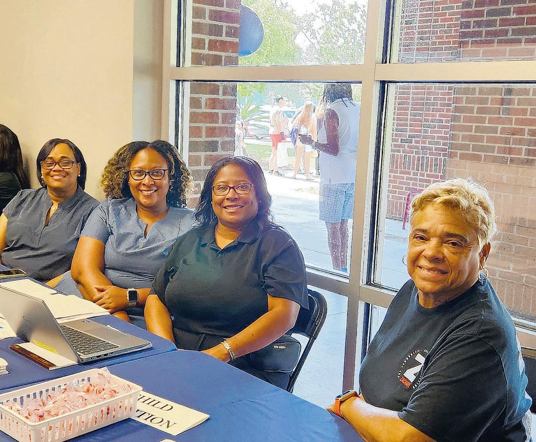 School nurses, from left, Sharrone Brown, Terrilyn Montgomeryand Terasia Douglas, greet students, offer informationand provideresources about vital services available for students. Aeneid Mason, director of Student SupportServices at ZacharyCommunity Schools, far right, heads the massivedepartment providing supportservices to the district.