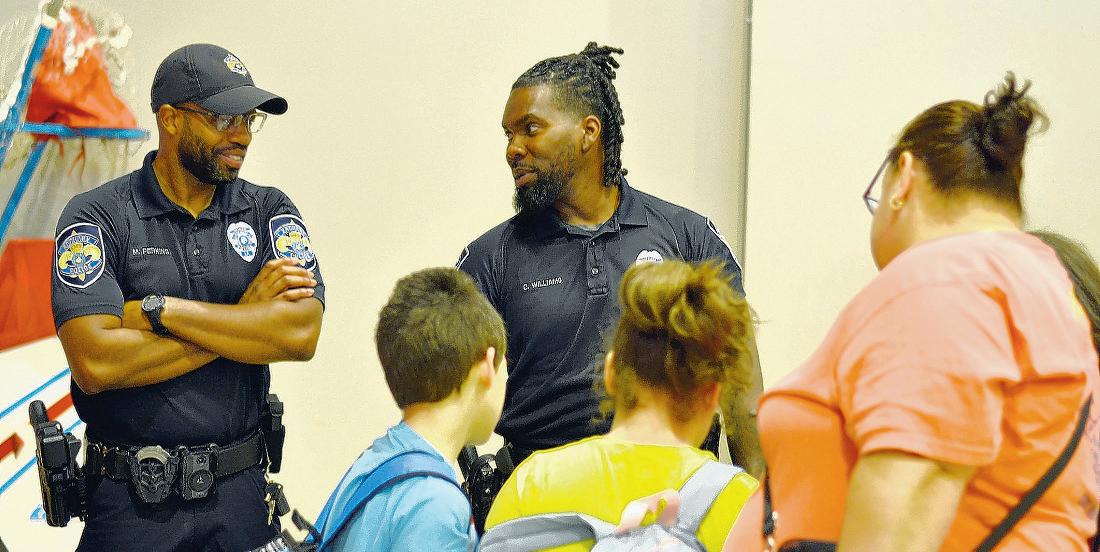 ZacharyPolice officer Manuel Perkinsand Sgt.Cothern Williams offer friendly faces and