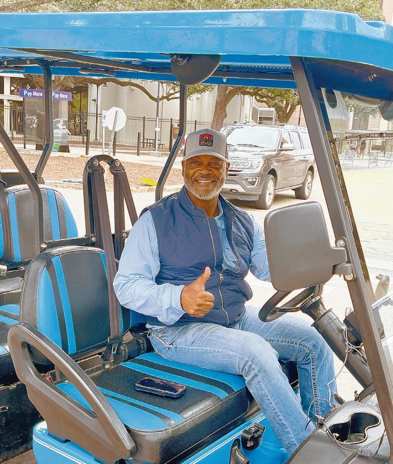 Major Jones, of Zachary, provides golf cartrides across the parking lots to LSU’sPete Maravich CenteronJan. 26 before the women’s basketball game against Texas A&M
