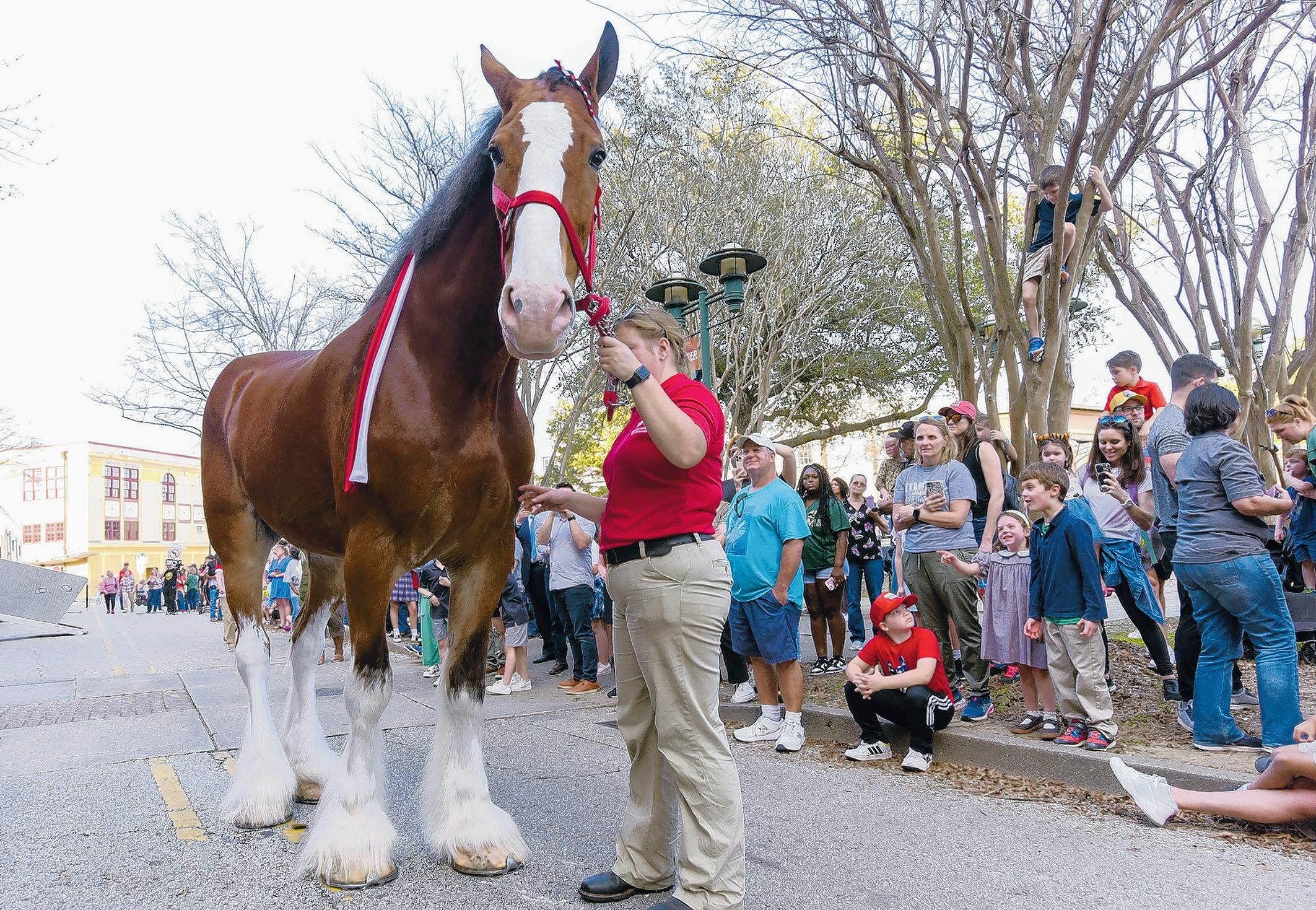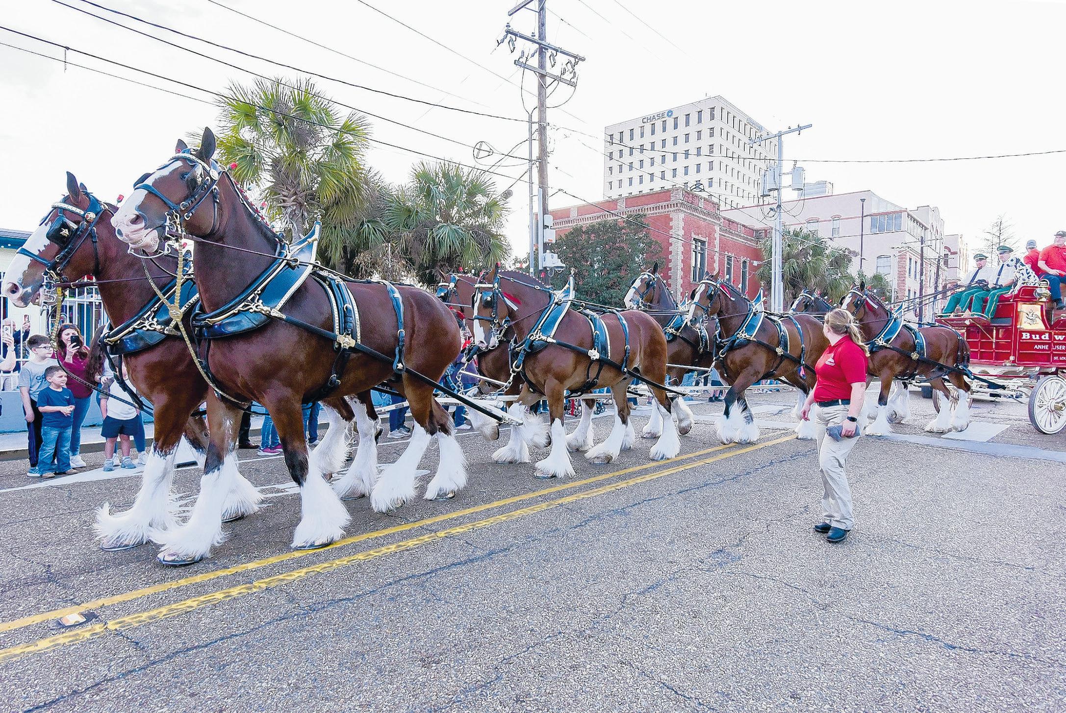 The Budweiser Clydesdales marched through downtown Lafayette on Wednesday, stopping at local bars and restaurants for photos. They will