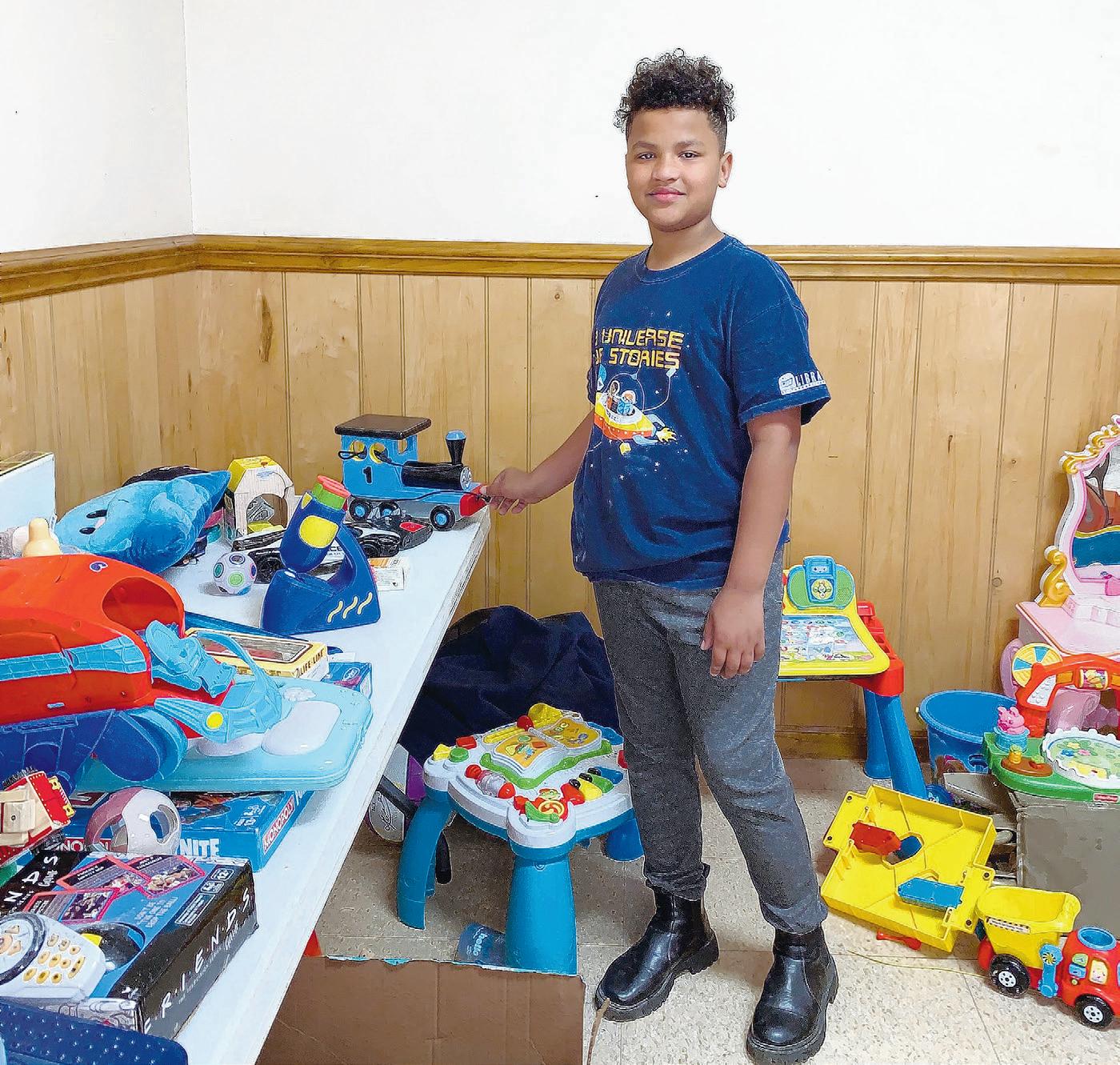 Malachi Seymour, of Jackson, looks at a train among other toys on sale.