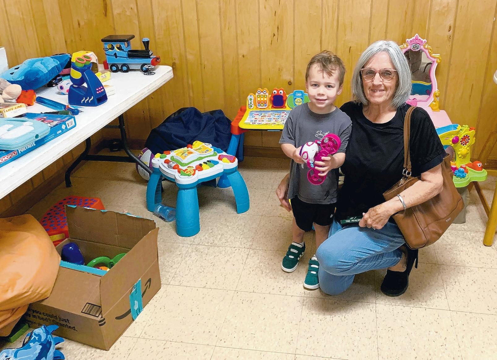 PHOTOS BY MELINDA RAWLS HOWELL Graham and Cindy, of Clinton, look at the toys on sale Saturday at a Boy Scout garage sale in Jackson.