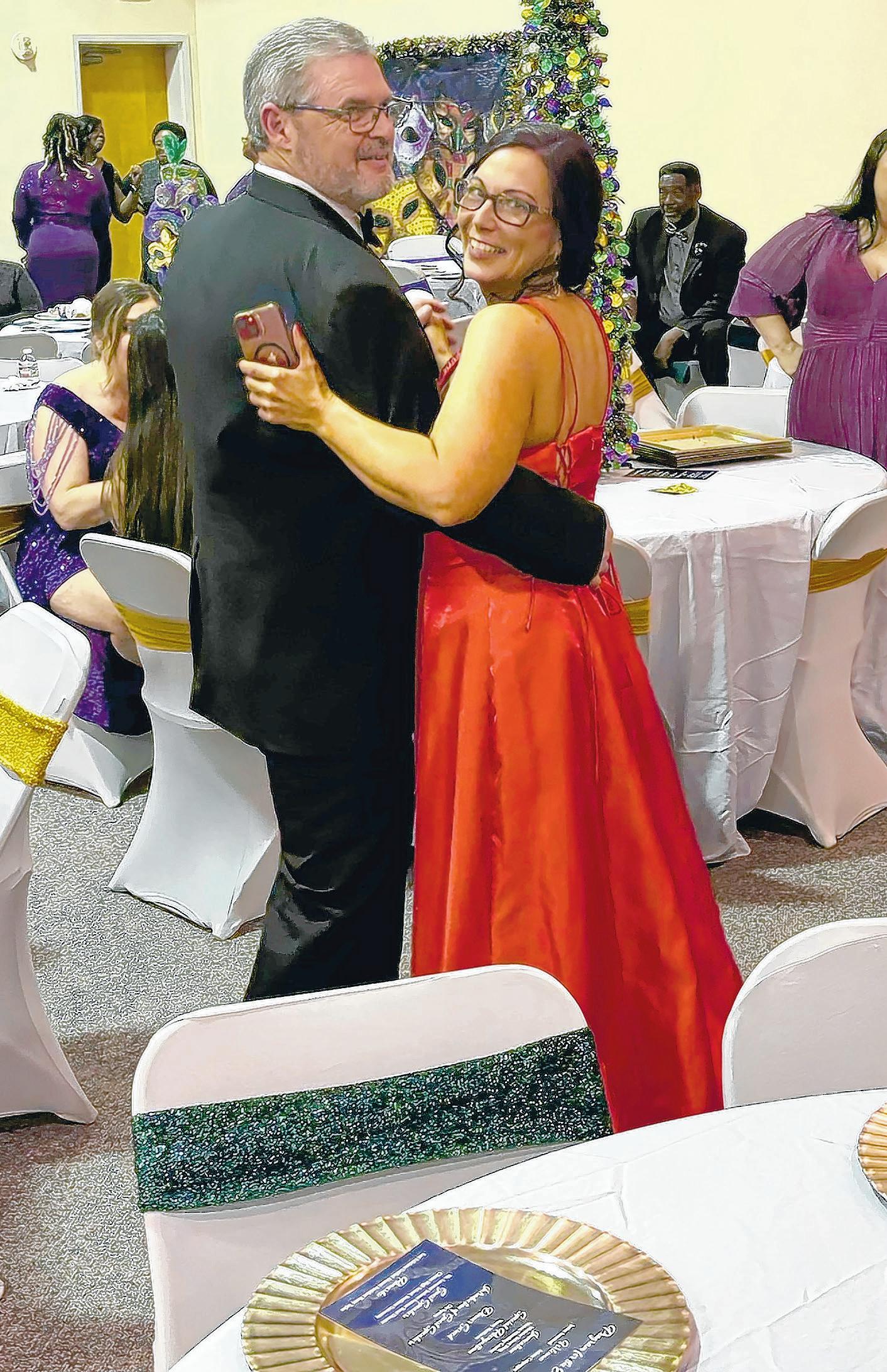 Shannon Rogers and Phillis Gagliano dance at the East Feliciana Unified Alumni Association Mardi Gras Gala.