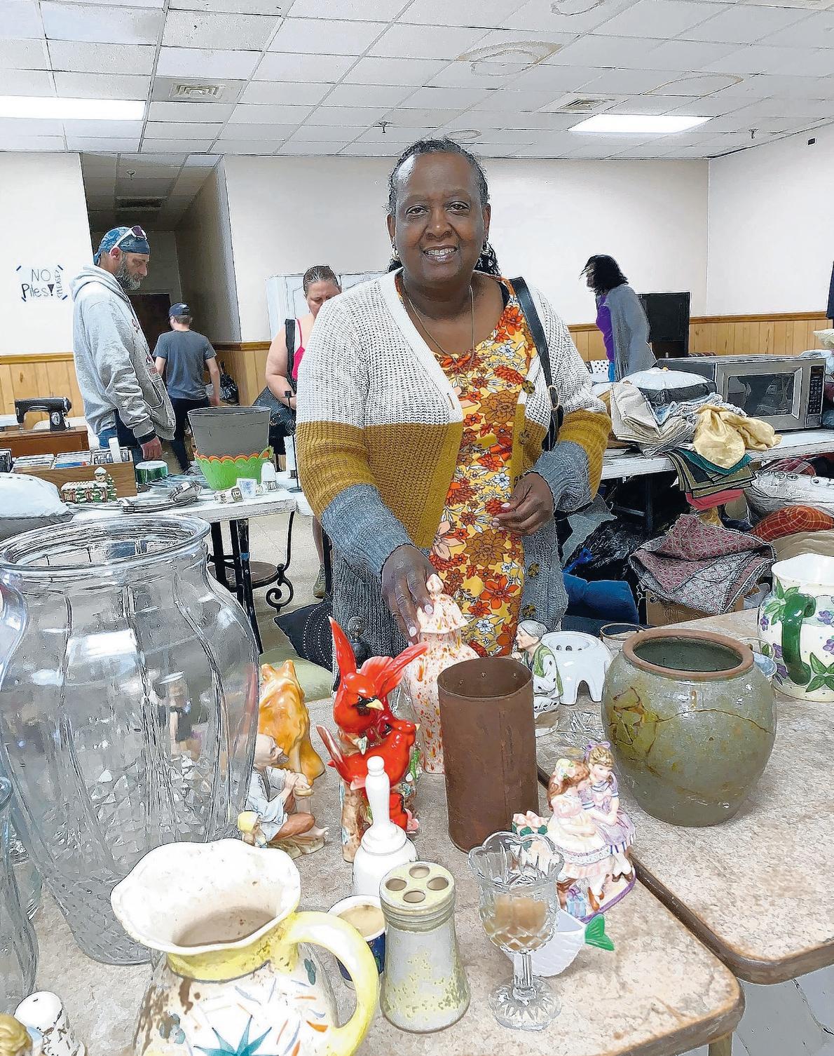 Ruby Jones, of Ethel, looks at some of the decorative items on sale.