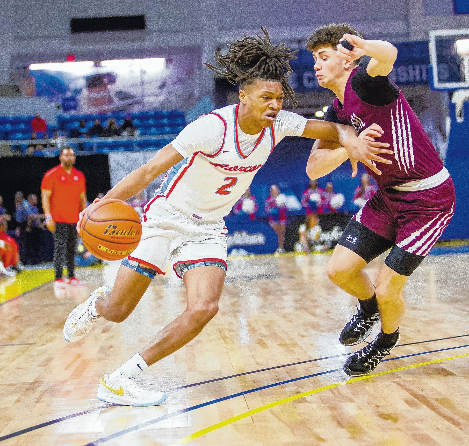 Zachary’s Aiden Givens drives past Central Baton Rouge’s Jace Conrad during the LHSAA Division