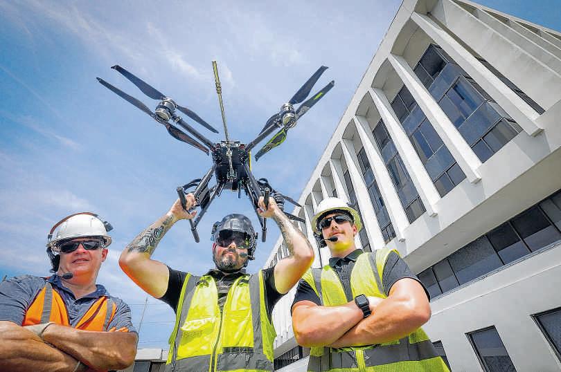 Before each wash job,the team views thebuilding on Google Earth to develop asiteplanand then launches avideo drone to survey the area, identifying whichspots need additional attention or are damaged