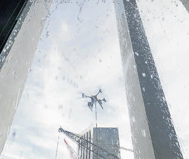 Voelker said the drones can clean 5,000to7,000 square feet in an hour,though it can take longer depending on other factors likethe building’smaterial and design.