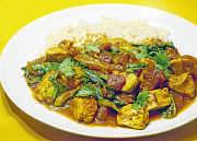 4. Servewithriceorpasta garnishedwiththe choppedcilantro andmint,and lemon wedges